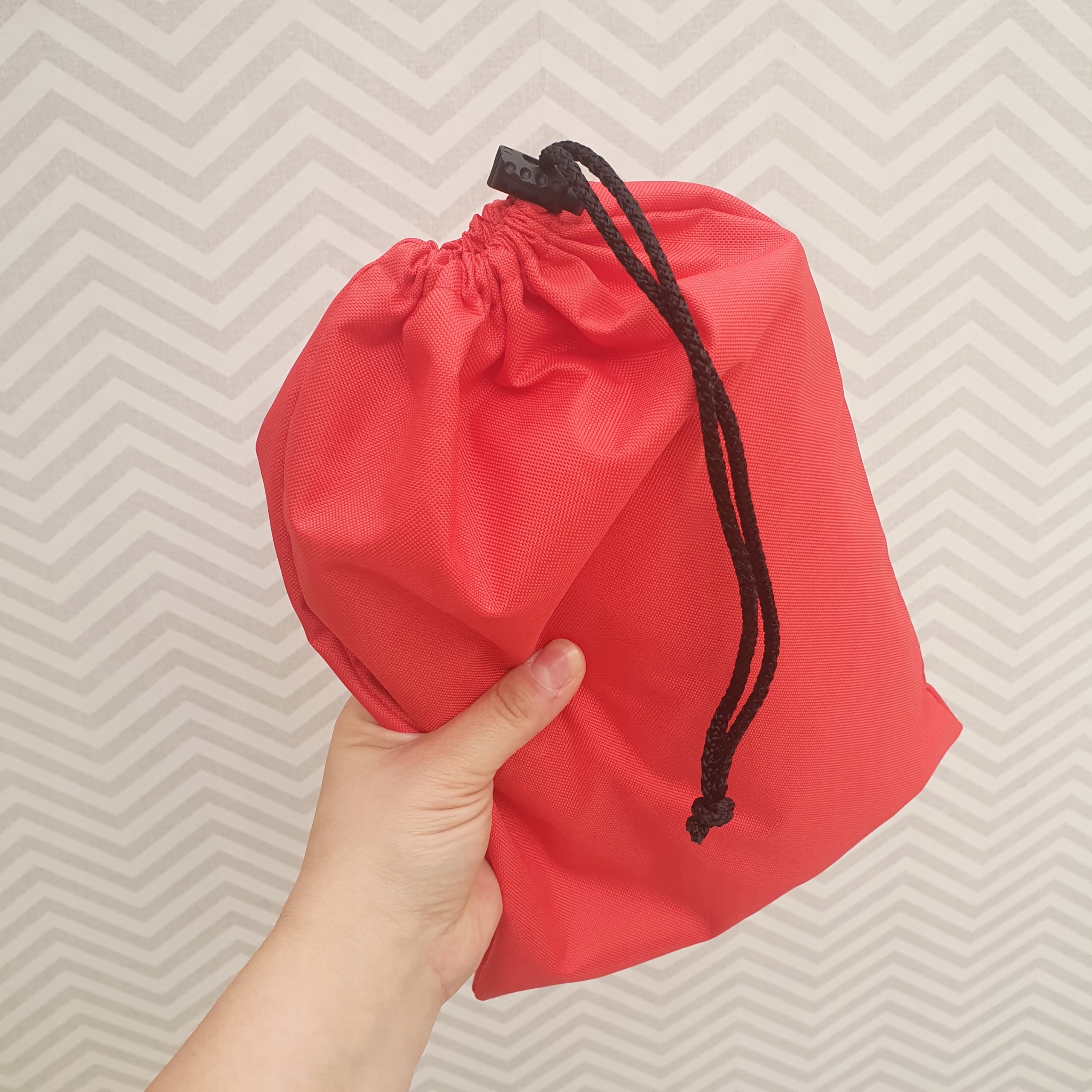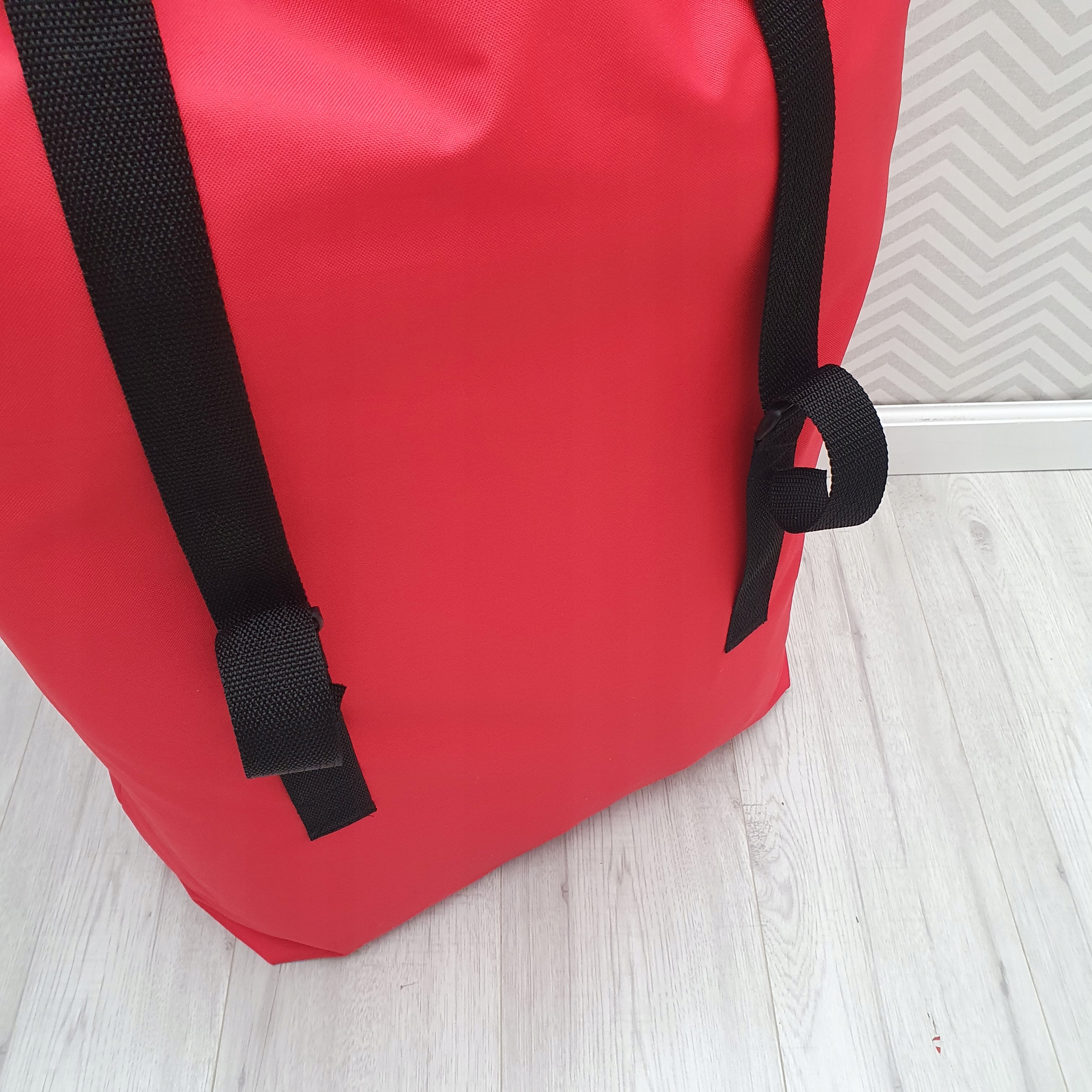 Чехол изготовлен из колясочной ткани, прочной и устойчивой к механическим повреждениям и погодным условиям (водонепроницаемой). Мешочек закрывается шнурком с пробкой. Имеет прочные регулируемые лямки, облегчающие переноску коляски (как рюкзак).