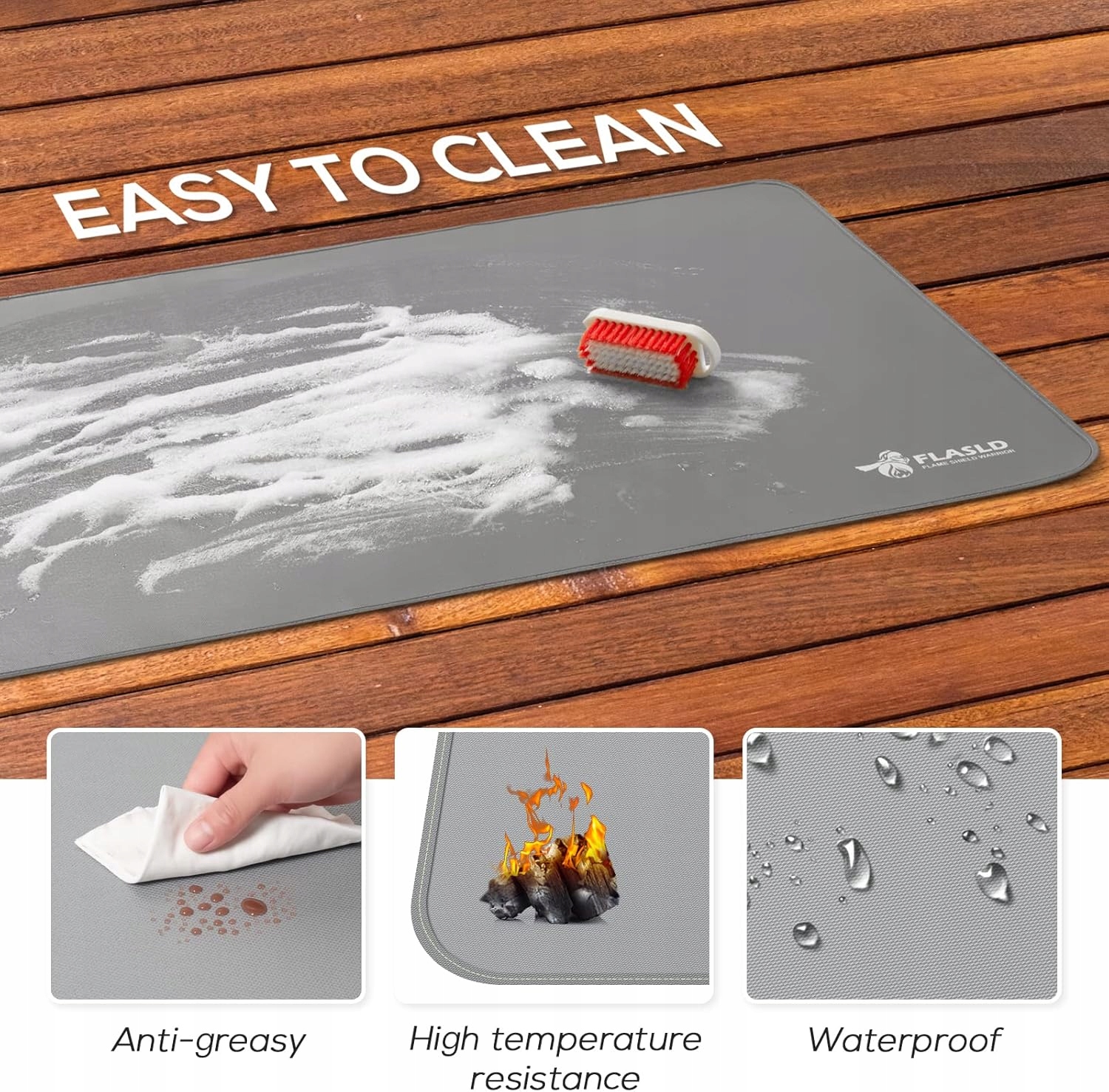 - Силиконовая сторона полностью водонепроницаема от жидкостей, газов и тлеющих углей.