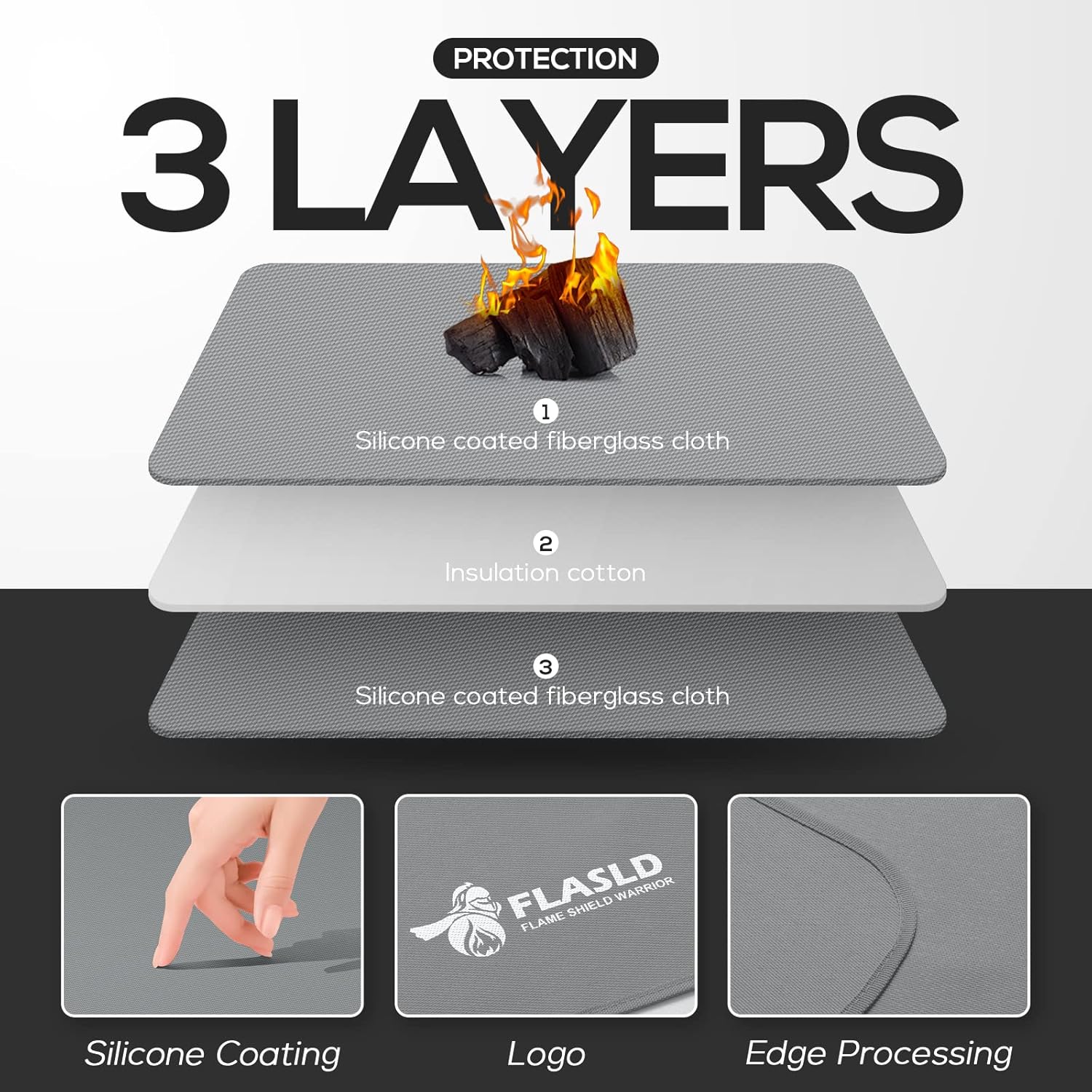 Размеры 100 x 60 см обеспечивают защиту больших площадей. Он отлично подойдет в различных ситуациях — под грилями, каминами или каминами, эффективно защищая полы и газоны от жира и жары.