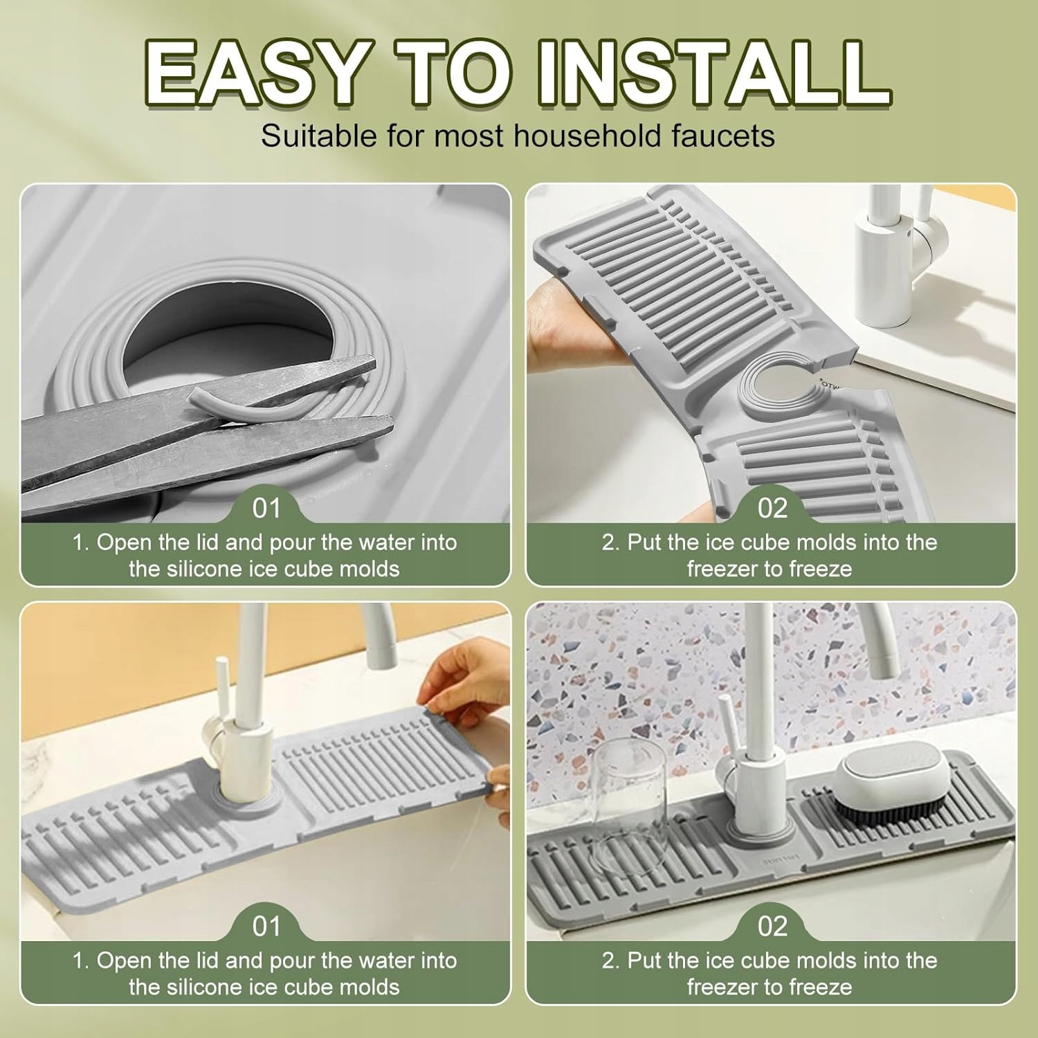 Эта силиконовая площадка была разработана для предотвращения брызга воды во время мытья посуды. Благодаря этому ваш топ раковины никогда не будет влажной, а рядом с краном не будет пятен. И вам не нужно беспокоиться, что вода останется на коврике или на столешнице