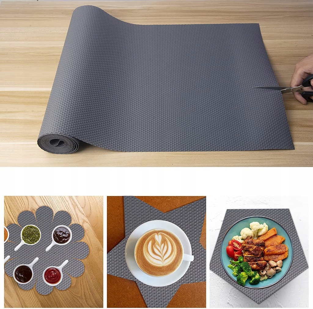 - Высокое качество: серые вставки для полков. Особенности: Не -Слайп, не -пожимая, водонепроницаемая, без запаха. Его можно использовать в качестве полков, ящиков, вставки холодильника, кухонных шкафов, шкафов, шкафов, прокладок и настольных ковриков. Легко измерить и сократить свои собственные потребности. Защитите ящики кухонных шкафов от длительного потребления и легко удаляют жирные места