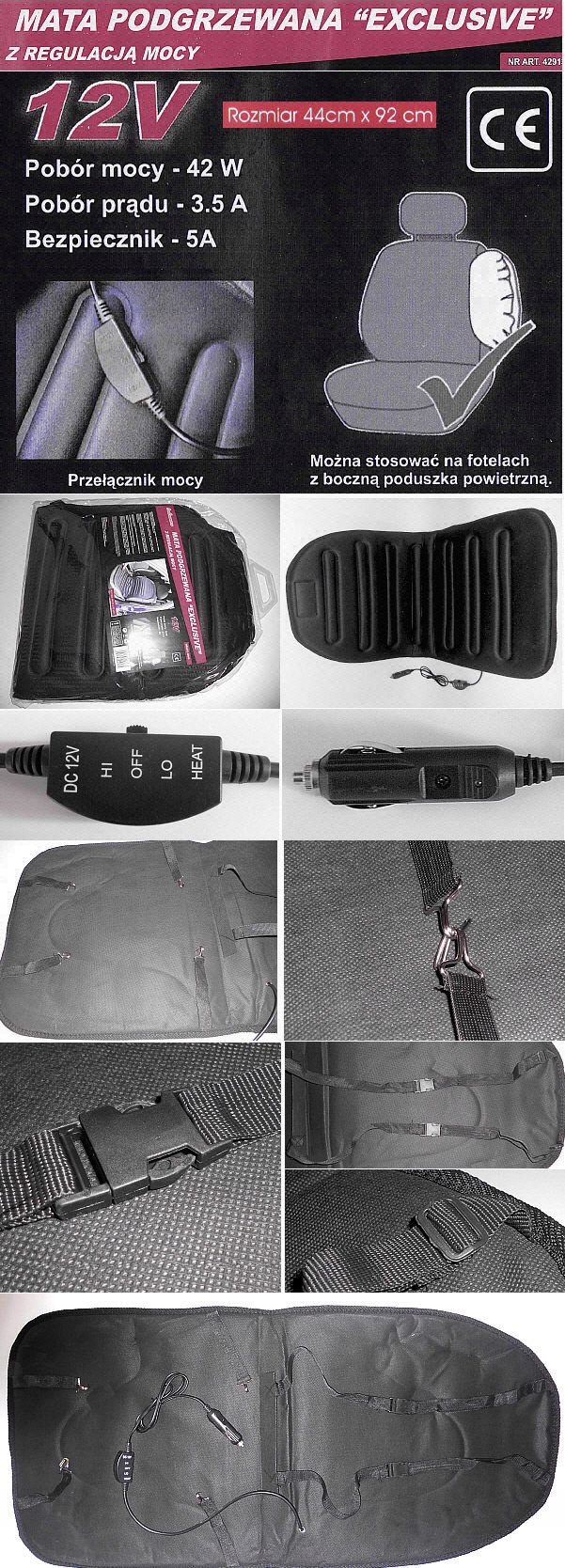 mozliwosc stosowania maty na fotelach z boczna paneska Sterujacy - Umozliwiajac Wybor 2 Stopni Grzania oraz