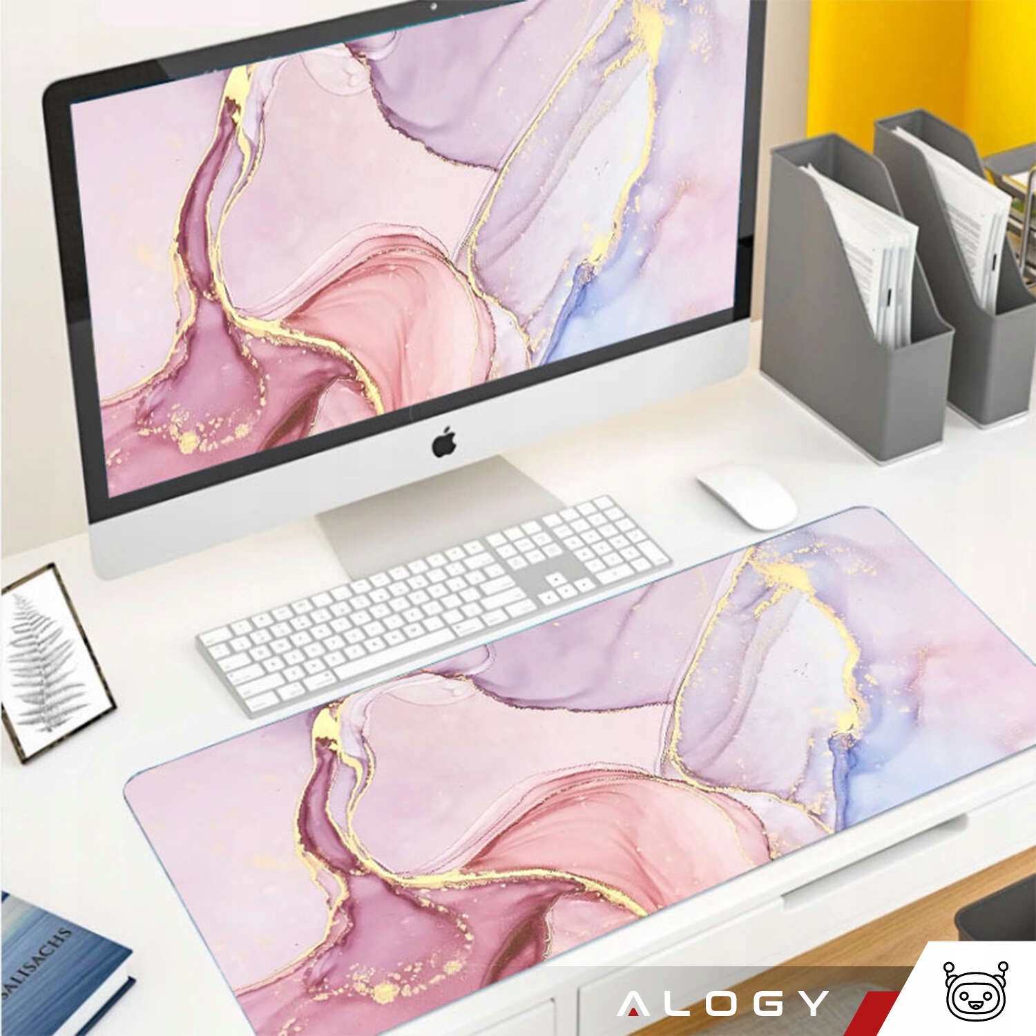▶️ Настольный коврик для мыши, клавиатуры, защитный противоскользящий игровой коврик xxl 88x40 Alogy Marble Pink