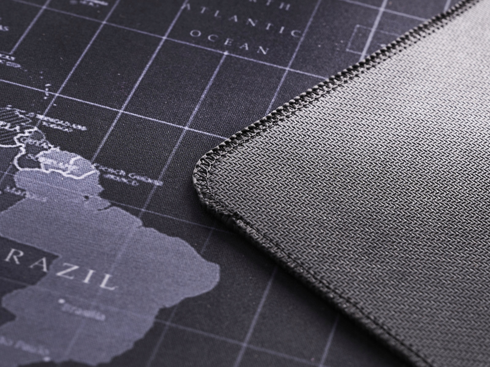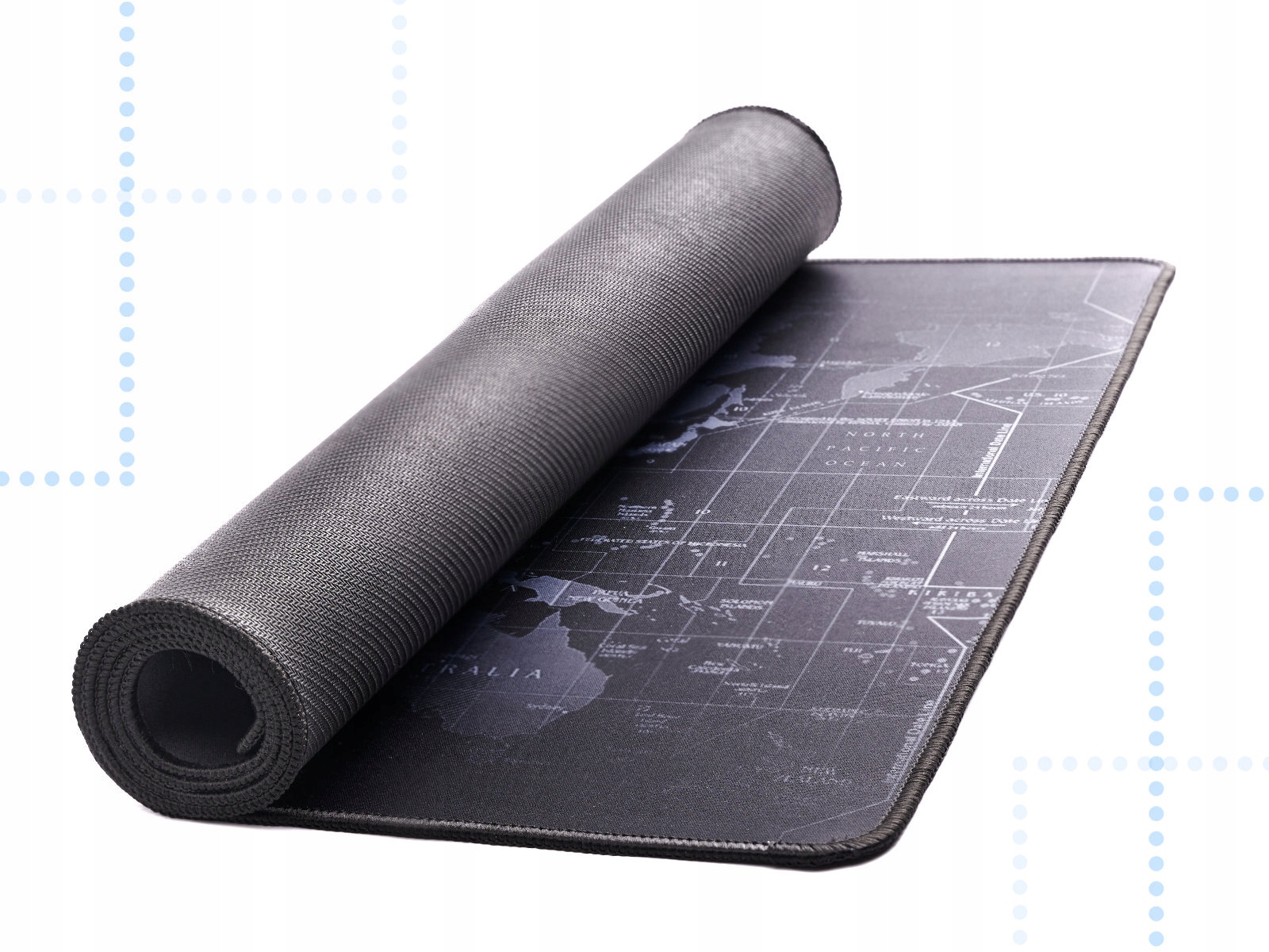 Большой коврик для мыши. Противоскользящее дно покрыто слоем натурального каучука. Гладкая, тканевая поверхность, устойчивая к загрязнениям. Края коврика прошиты, чтобы он не осыпался.