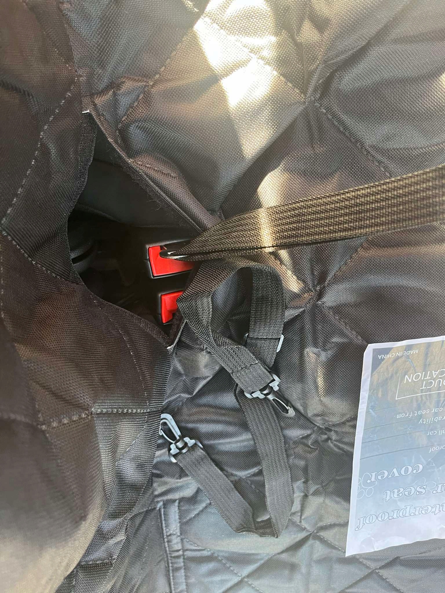 ЛЕГКАЯ УСТАНОВКА И БЕЗОПАСНОСТЬ - просто разверните коврик на заднее сиденье автомобиля и прикрепите его с помощью крючков к подголовникам и боковым ручкам; специальные прорези для ремней позволяют прикрепить животное в целях безопасности.