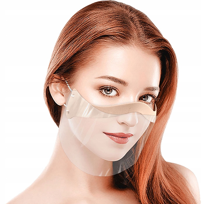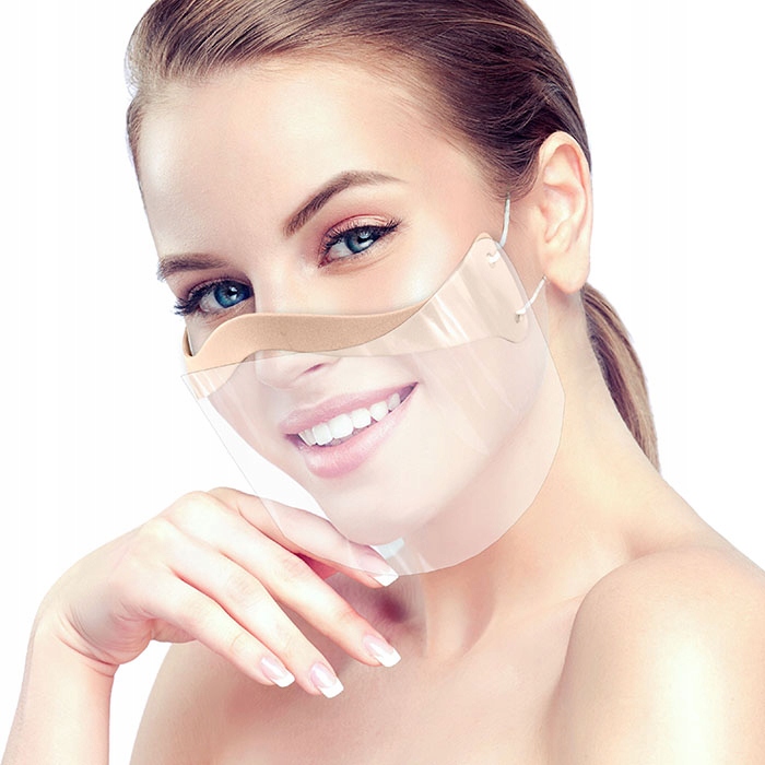 Легкий и удобный защитный козырек для рта и носа (кроме глаз). Она сочетает в себе комфорт маски и, благодаря своей прозрачности, действует как защитная маска для лица. Изделие многоразового использования, изготовленное из полиэфирного стекла весом 200-300 г и прочного пенопласта в качестве структурного элемента. Закрепляется за ушами на белых резинках.