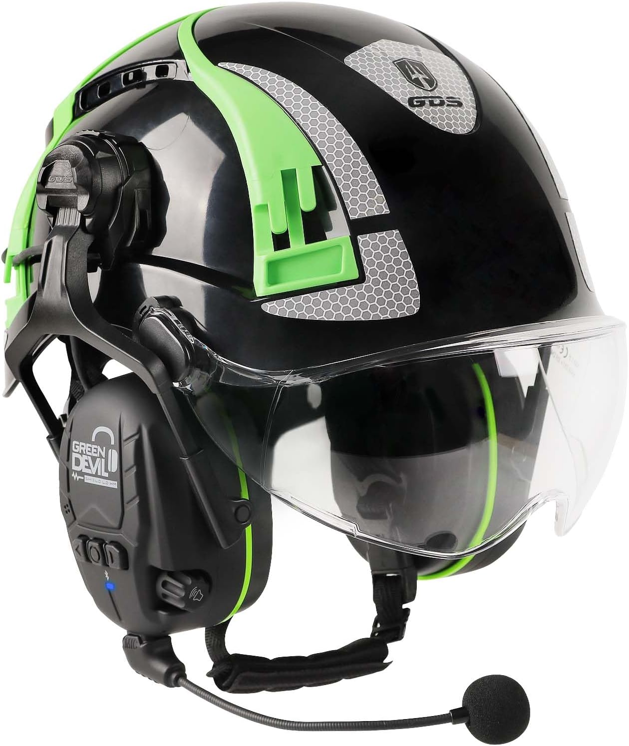 Защитный шлем для строителей, для лесорубов зеленый дьявол черный Bluetooth