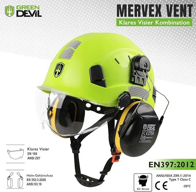 Kask Ochronny GREEN DEVIL 3w1 z Wizjerem i Nausznikami, EN 397