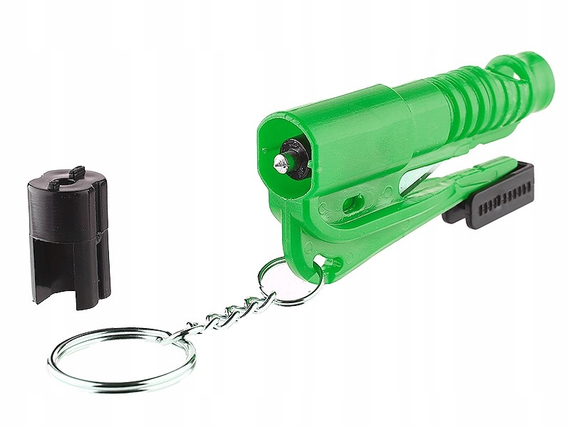 для безопасности для водителя. Маленький. Но очень полезный продукт, который сочетает в себе характеристики стеклянного молотка и нож для режущих ремней сиденья . Идеальный гаджет для каждого уважающего любителя выживания, и, прежде всего, маленький предмет, который может спасти жизнь водителя в кризисе. Нижняя часть кольца клавиши - защищено пластиковым элементом. Металлический круг, который позволяет вам повесить кольцо клавиши на набор автомобильных ключей.