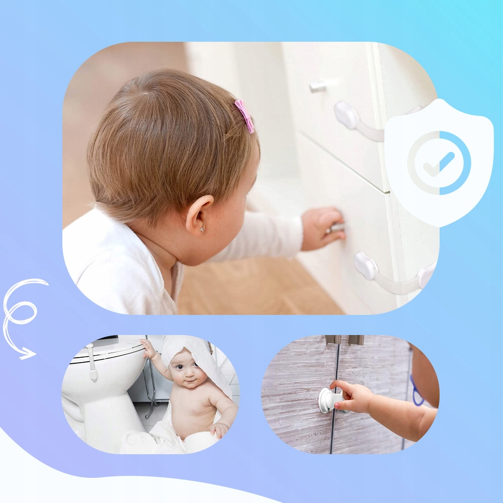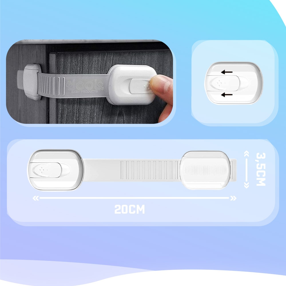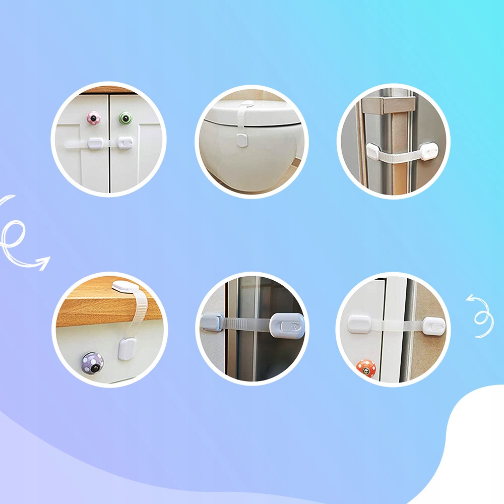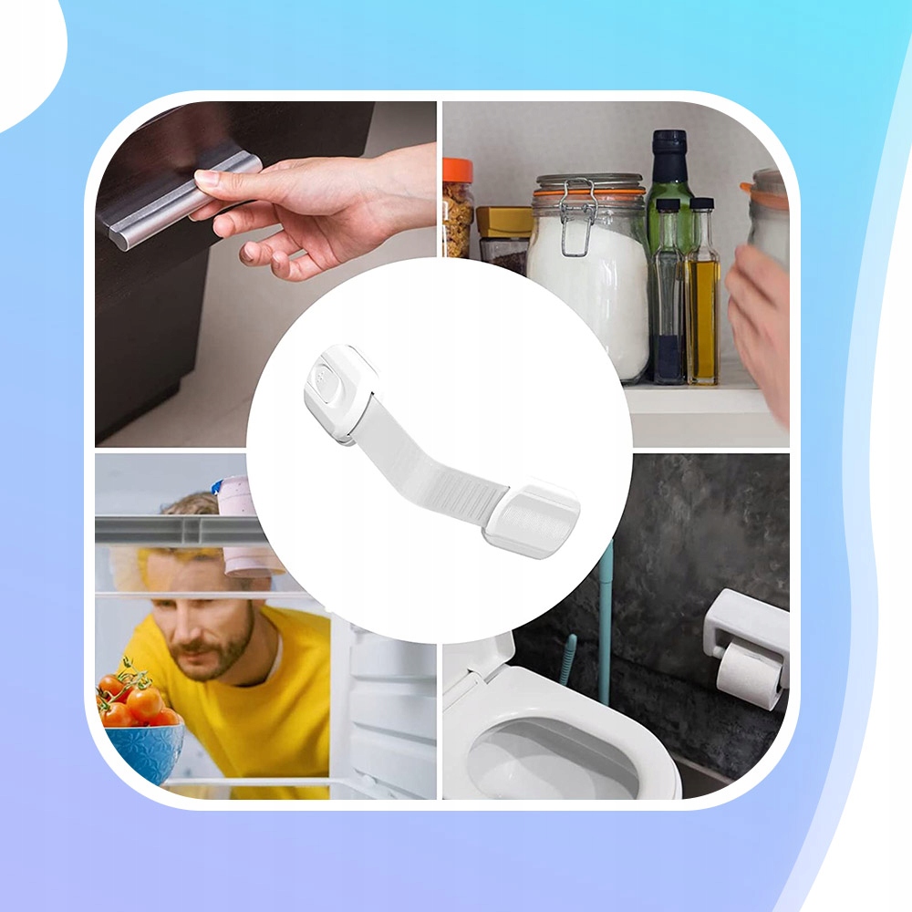 Предмет продажи - замок универсальный для шкафов, дверей и т.п. Товар изготовлен из качественных материалов. Установка очень проста и интуитивно понятна – достаточно приклеить крючки с помощью прочного скотча 3М, входящего в комплект. Замки очень просты в использовании, поэтому не вызывают проблем в повседневном использовании, а также имеют возможность регулировать длину ремешка. Приобретите защелки сегодня и обеспечьте безопасность своих детей.
