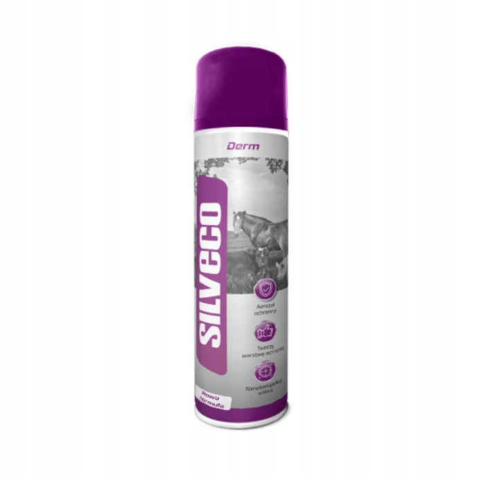 Silveco Derm — защитный аэрозоль на основе активных форм серебра, защищающий копыта после коррекционных процедур (без использования медного купороса). Его уникальные свойства защищают поврежденные ткани от негативного воздействия болезнетворных микроорганизмов, возникающих в среде, связанной с существованием сельскохозяйственных животных.