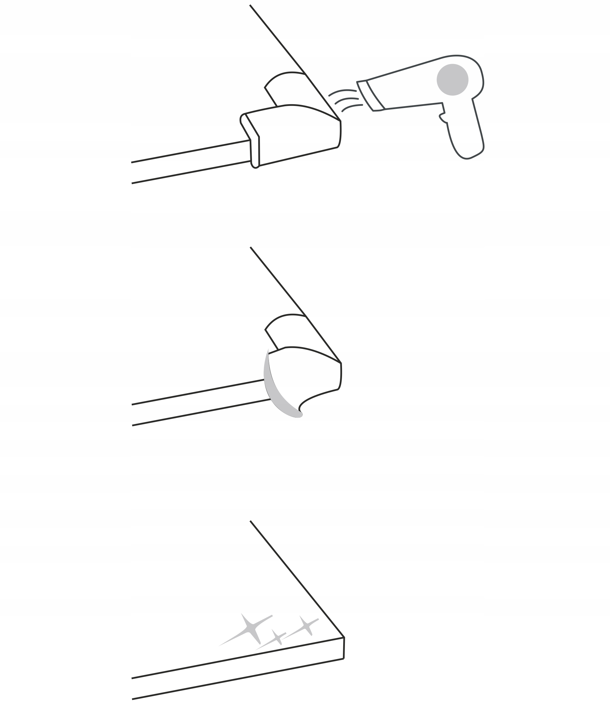 ✳️Если угол приклеился намертво, можно использовать фен, чтобы аккуратно нагреть ленту и облегчить ее удаление