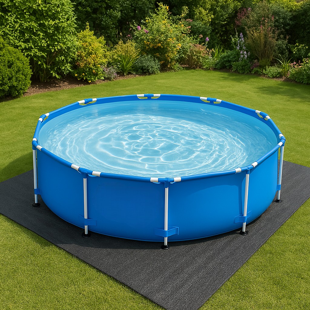 Фонд вырезан из ролика шириной 100 см. Это идеально подходит для садовых бассейнов. Просто расположите коврики рядом друг с другом, а затем подключите их с усиленной лентой (так -названное серебро). Вы можете немедленно сломать бассейн на подготовленный подложку.