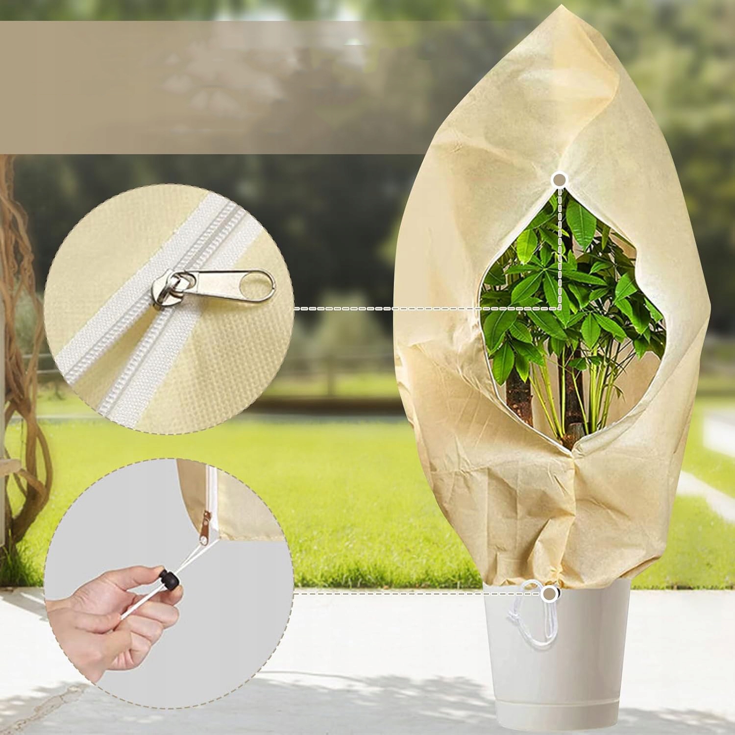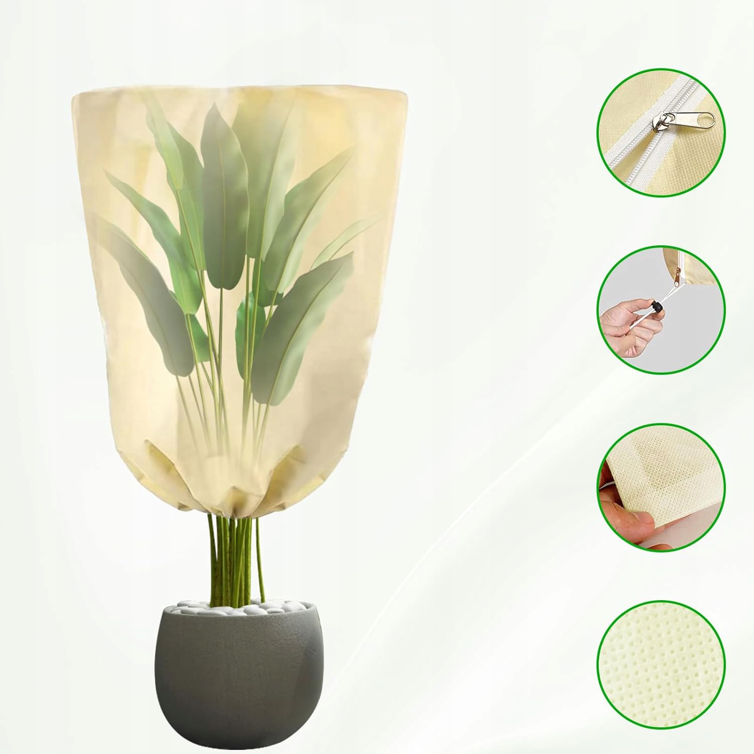 - Шнурок и молния предотвращают порывы ветра, облегчая установку и закрытие горшечных растений.