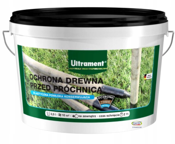 Деревянный защита от зубов - это битумный агент, предназначенный для того, чтобы создавать защитные покрытия на призраках и деревянные элементы, имеющие прямой контакт с почвой. Благодаря современному рецепту он создает гибкое покрытие, которое является барьером для влаги и агрессивных органических соединений, обнаруженных в земле, что вызывает разрушение зубов и разрушение древесины. Продукт предназначен для защиты деревянных столбов от строительства заборов, заборов, пергол, цветочных слоев, элементов детской площадки, таких как качели или скамейки.