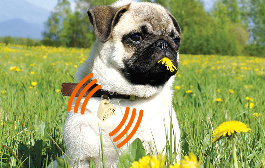 - Подвесьте устройство на ошейник животного так, чтобы оно было направлено сеткой на корпусе в сторону тела животного