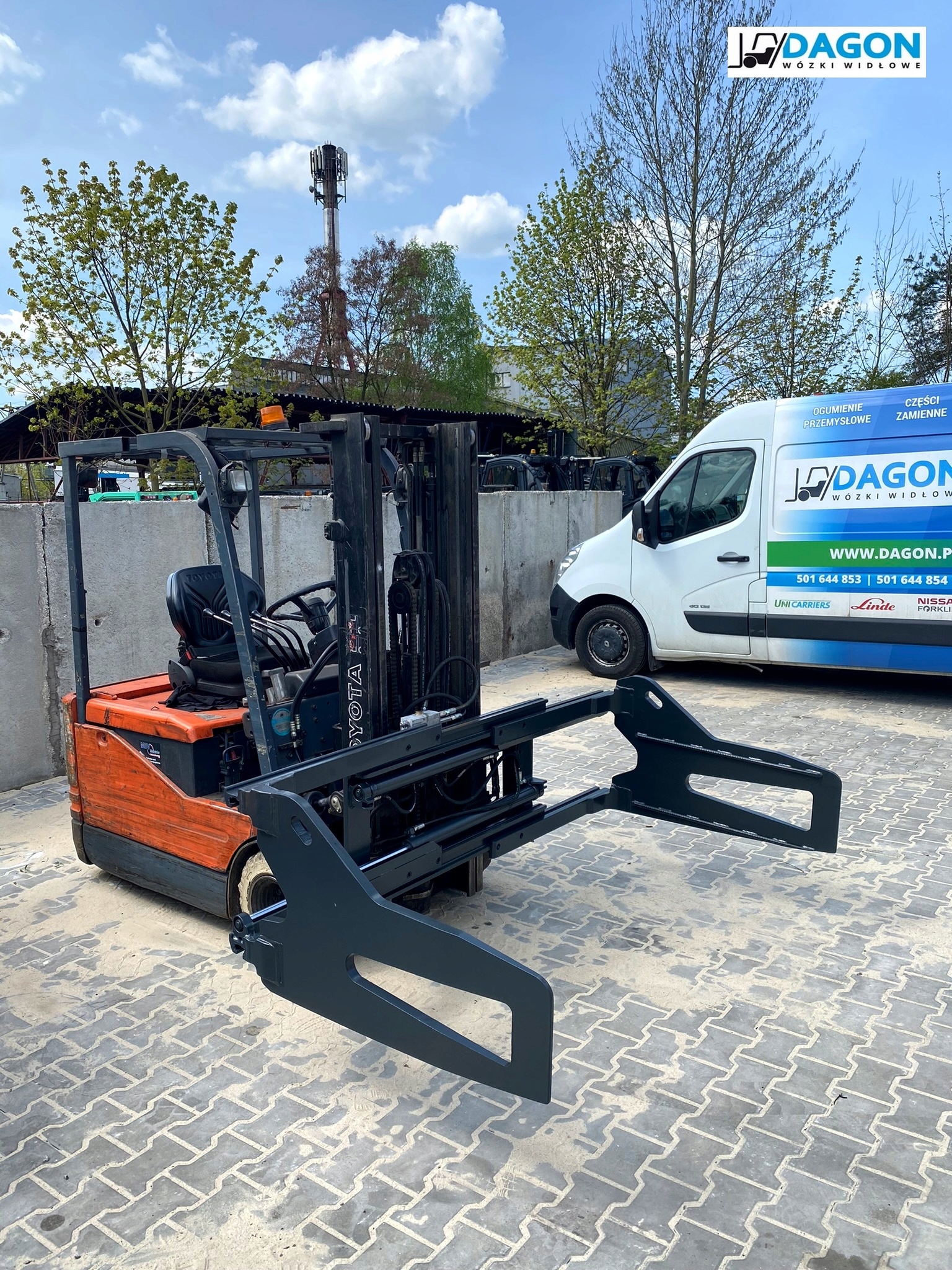 Вилочный погрузчик для презентации грейфера.