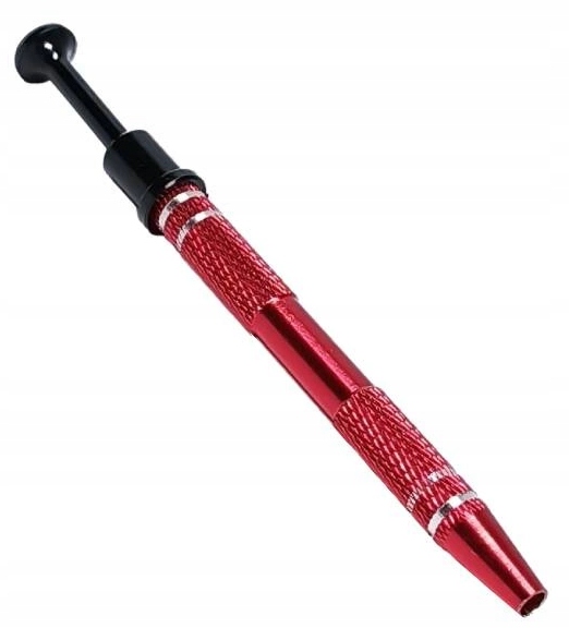 Очень полезный инструмент для точных работ. Чрезвычайно интуитивно понятное управление: нажимая кнопку «как на шприц», мы плавно раскрываем «когти», которыми хватаем заданный предмет. После отпускания кнопки инструмент затягивает захваты, и предмет остается надежно закрепленным.