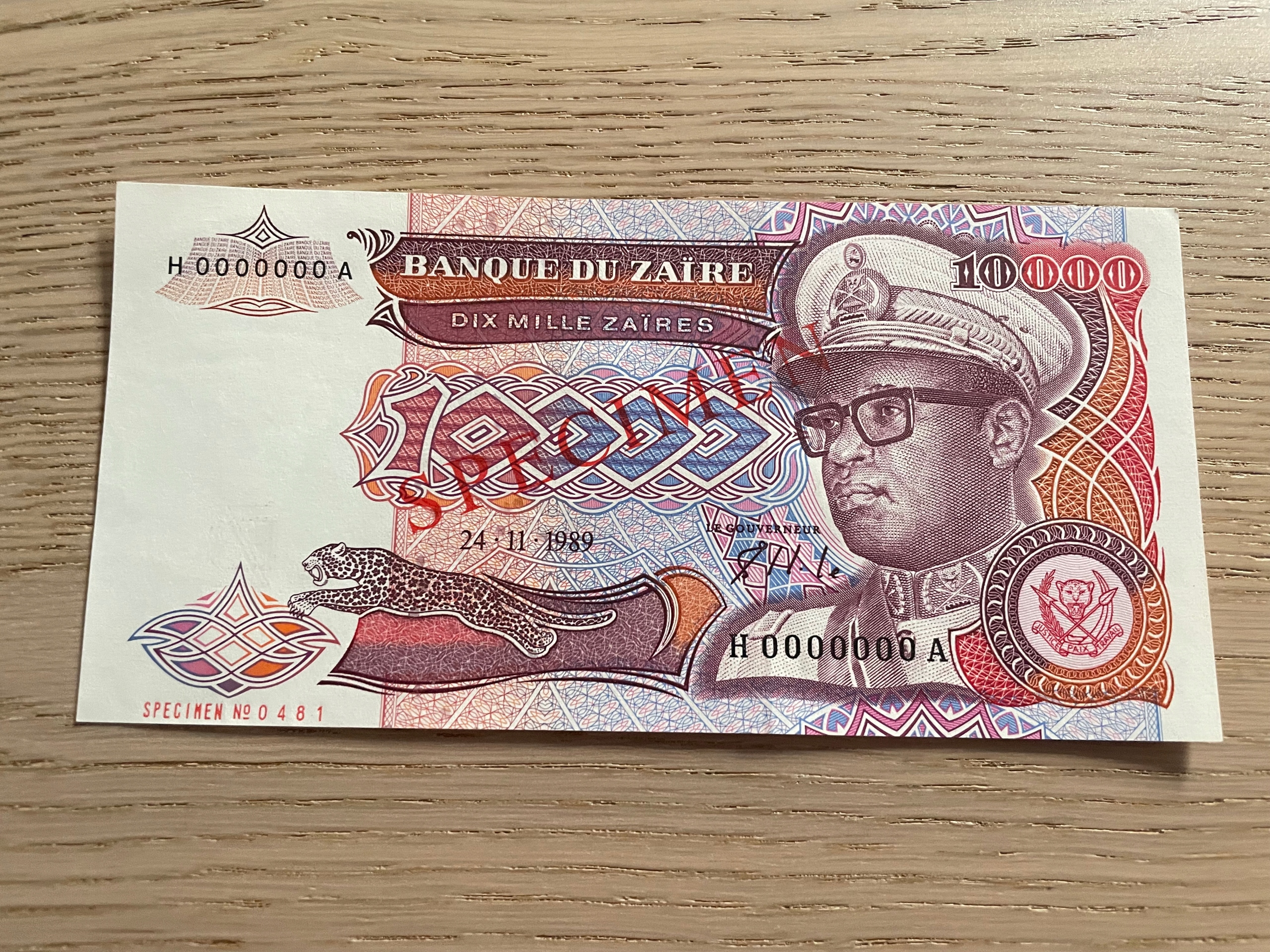 Zair - 10000 zairów - 1989 - specimen - UNC