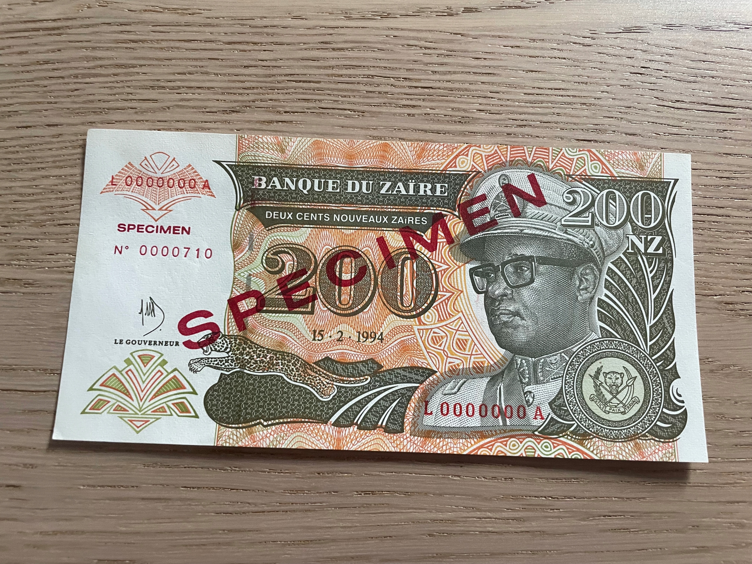 Zair - 200 zairów - 1994 - specimen - UNC