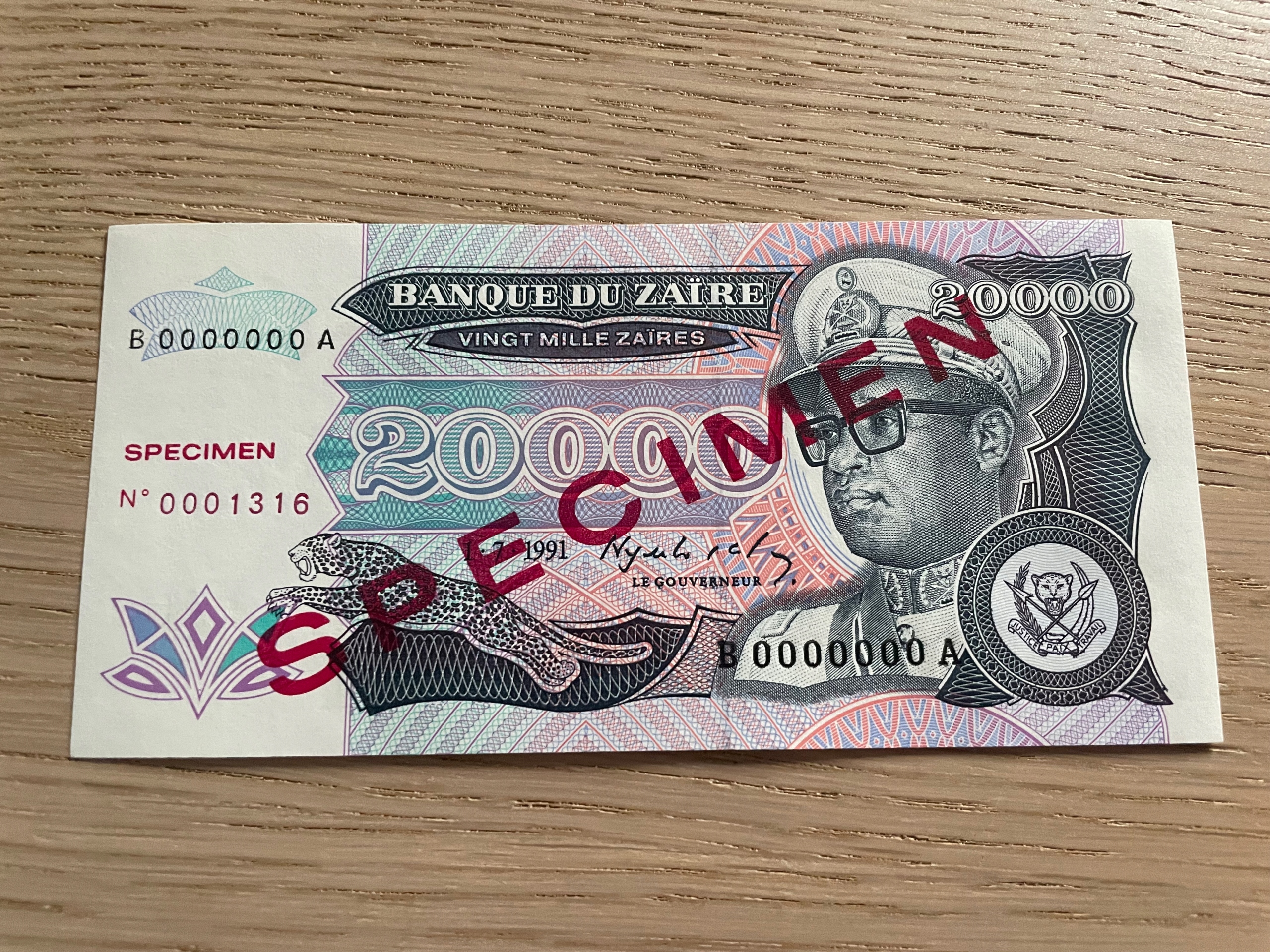 Zair - 20000 zairów - 1991 - specimen - UNC