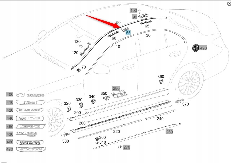 ЗАЖИМ, НАКЛАДКА НА ДАХУ MERCEDES C W205 СЕДАН A2059910198