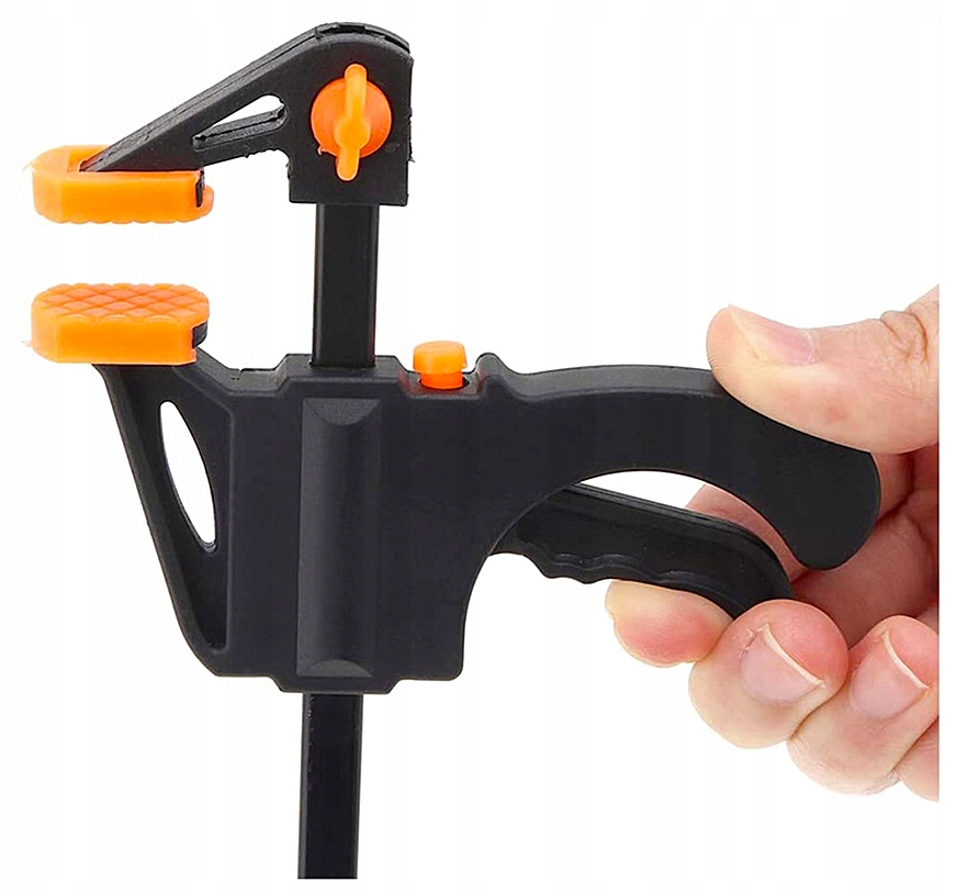 Быстромонтируемый столярный зажим обеспечивает точную работу. Система быстрой смены позволяет управлять зажимом одной рукой. Имеет возможность перемещать верхнюю часть челюсть и используйте зажим в качестве распорки. b>