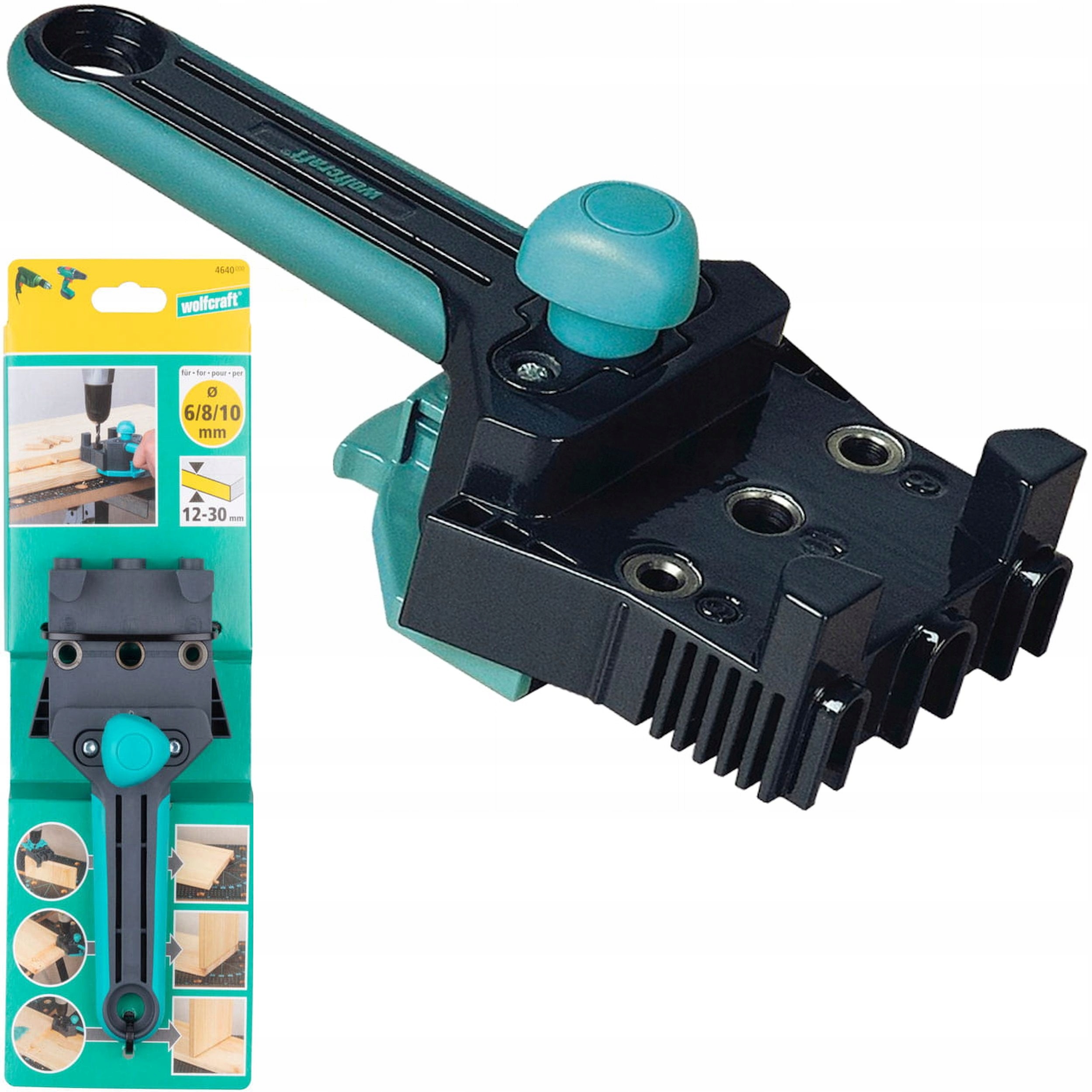 С помощью этого инструмента для дюбелей Wolfcraft вы сможете сразу же выполнить идеальные дюбельные соединения без какой-либо специальной подготовки. Отверстия для угловых, Т-образных и стыковых соединений идеально позиционируются с помощью регулируемого упора, 3 встроенных направляющих втулок для круглых дюбелей и 2 центрирующих штифтов. Высококачественные, ударопрочные втулки из пластика и стали для штифтов диаметром 6, 8 и 10 мм гарантируют отличную стабильность и длительный срок службы. Ручка устройства эргономичной формы удобно лежит в руке и позволяет эффективно работать практически в любой ситуации.