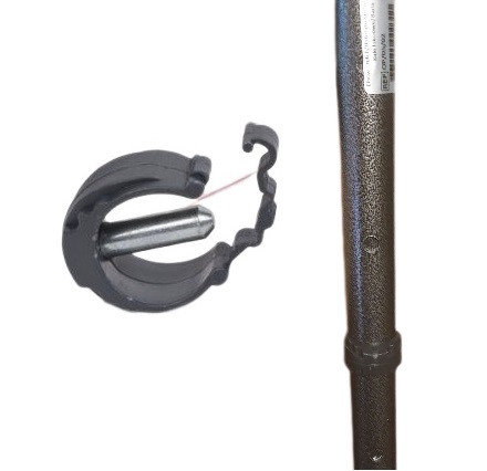 Зажим изготовлен из прочного материала (кольцо), стальной штифт и фиксатор, ЧТОБЫ НЕ ПОТЕРЯТЬ КРЮК. Он используется для фиксации костыля или инвалидной коляски на определенной высоте.