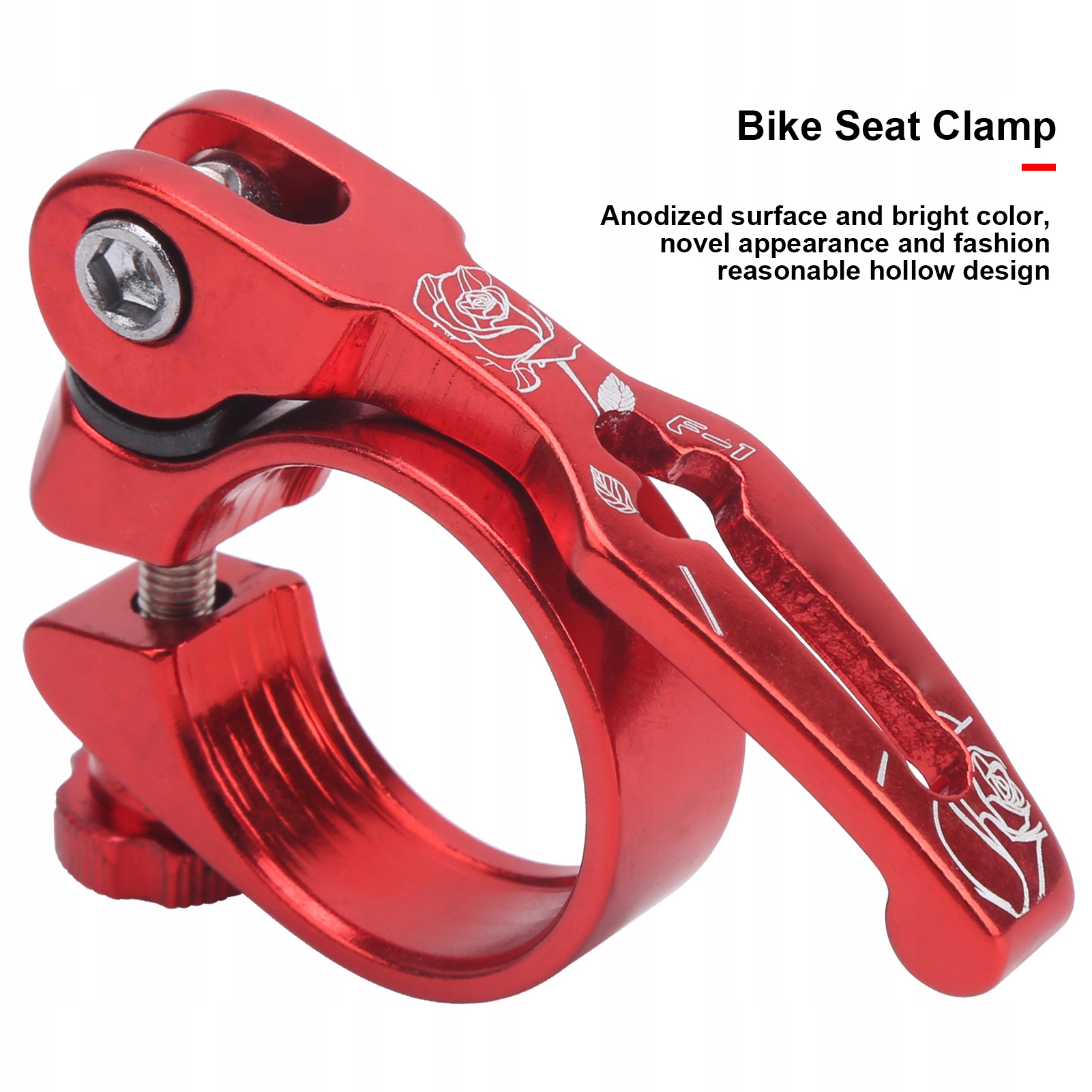 1. Быстросъемный седельный зажим, очень стабильный, легко разбираемый, устойчивый к коррозии и легкий. 2. Материал из алюминиевого сплава, легкий вес, высокая твердость, простота установки и использования. 3. Анодированная поверхность и яркий цвет, новый внешний вид и модный полый дизайн. 4. Простота в использовании и быстрое время отклика, вы можете регулировать зажим во время езды на велосипеде, чтобы обеспечить плавную езду. 5. На ваш выбор предлагается 4 разных цвета, подходящих для горных и шоссейных велосипедов.