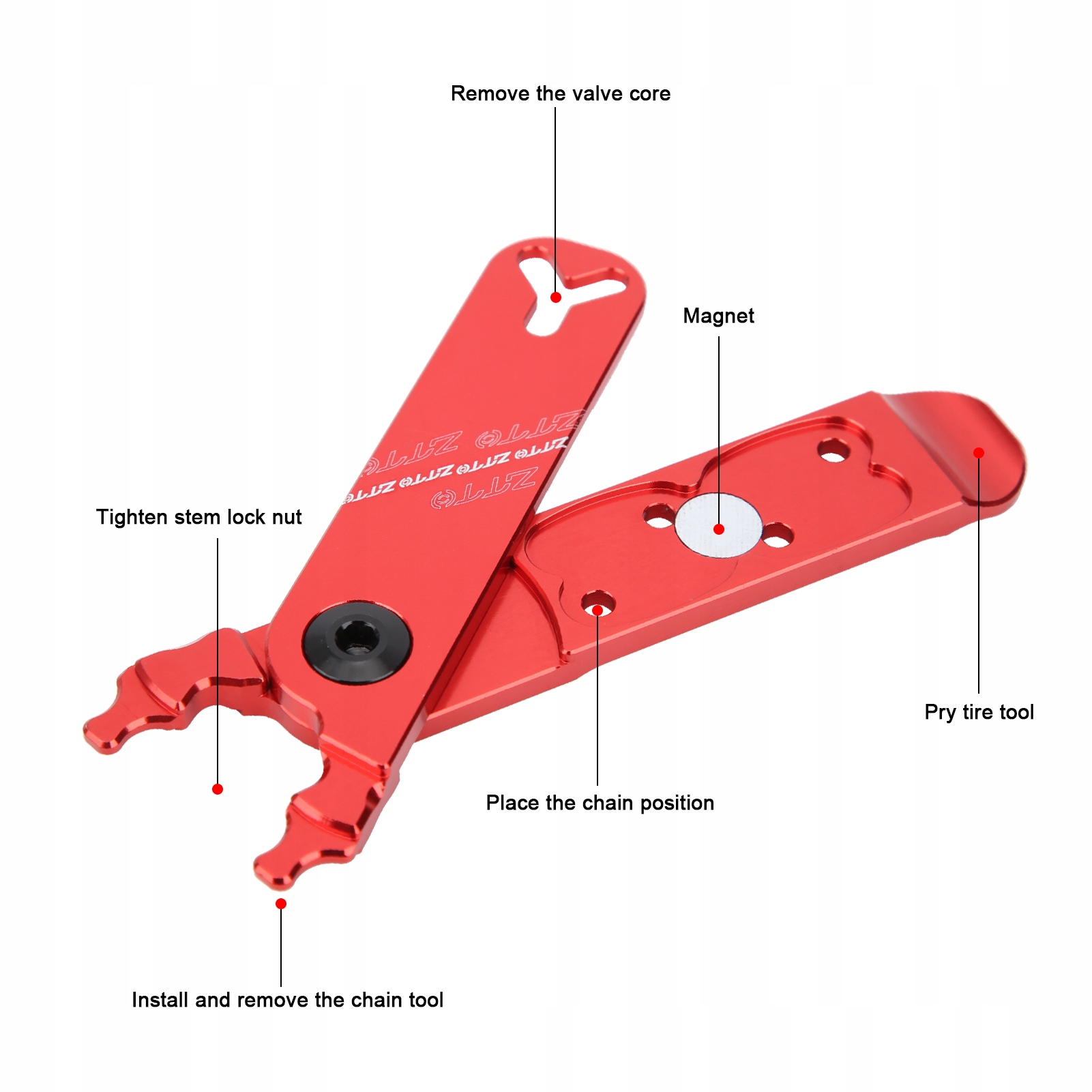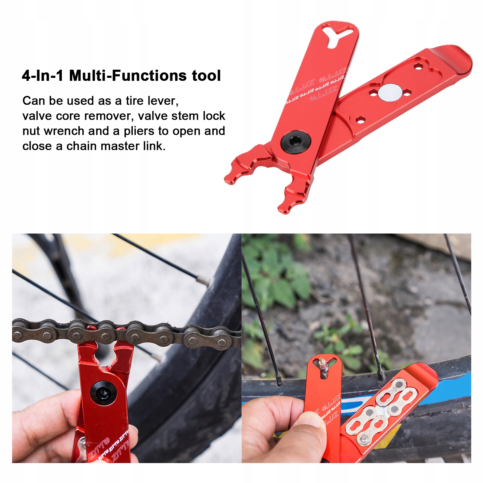 Щипцы для велосипедной цепи ZTTO. Щипцы для основного разъема. Инструмент для клапана. Рычаг для шин. Мультиинструменты 4 в 1.