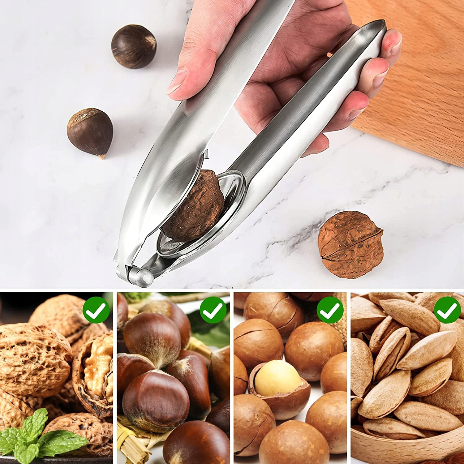 - Рычажная конструкция, простота в использовании, экономия труда, гладкая каштановая поверхность зажима, предотвращающая поранить руки при чистке орехов.