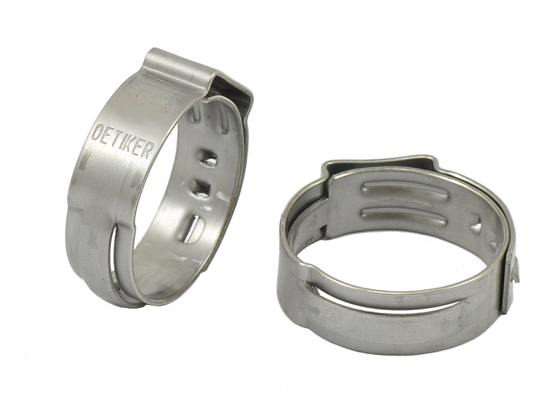 Зажим с системой закрытия, запатентованной немецкой компанией OETIKER. Элемент из нержавеющей стали.