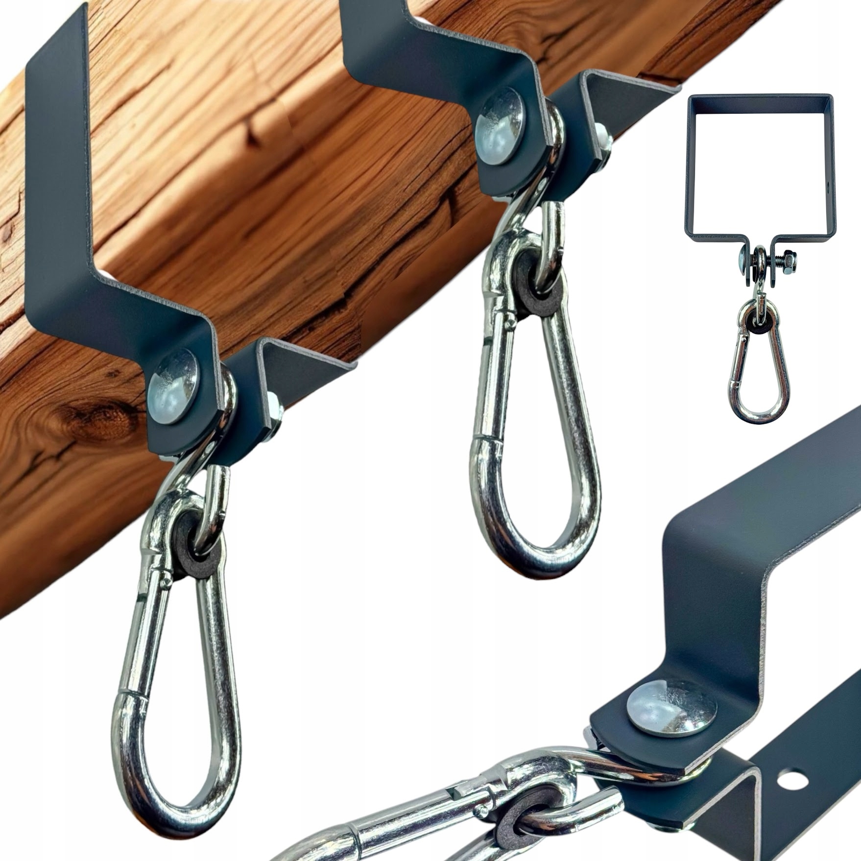 Квадратный зажим для крепления качелей с карабином 100х100 мм антрацит/графит, комплект из 2 предметов.