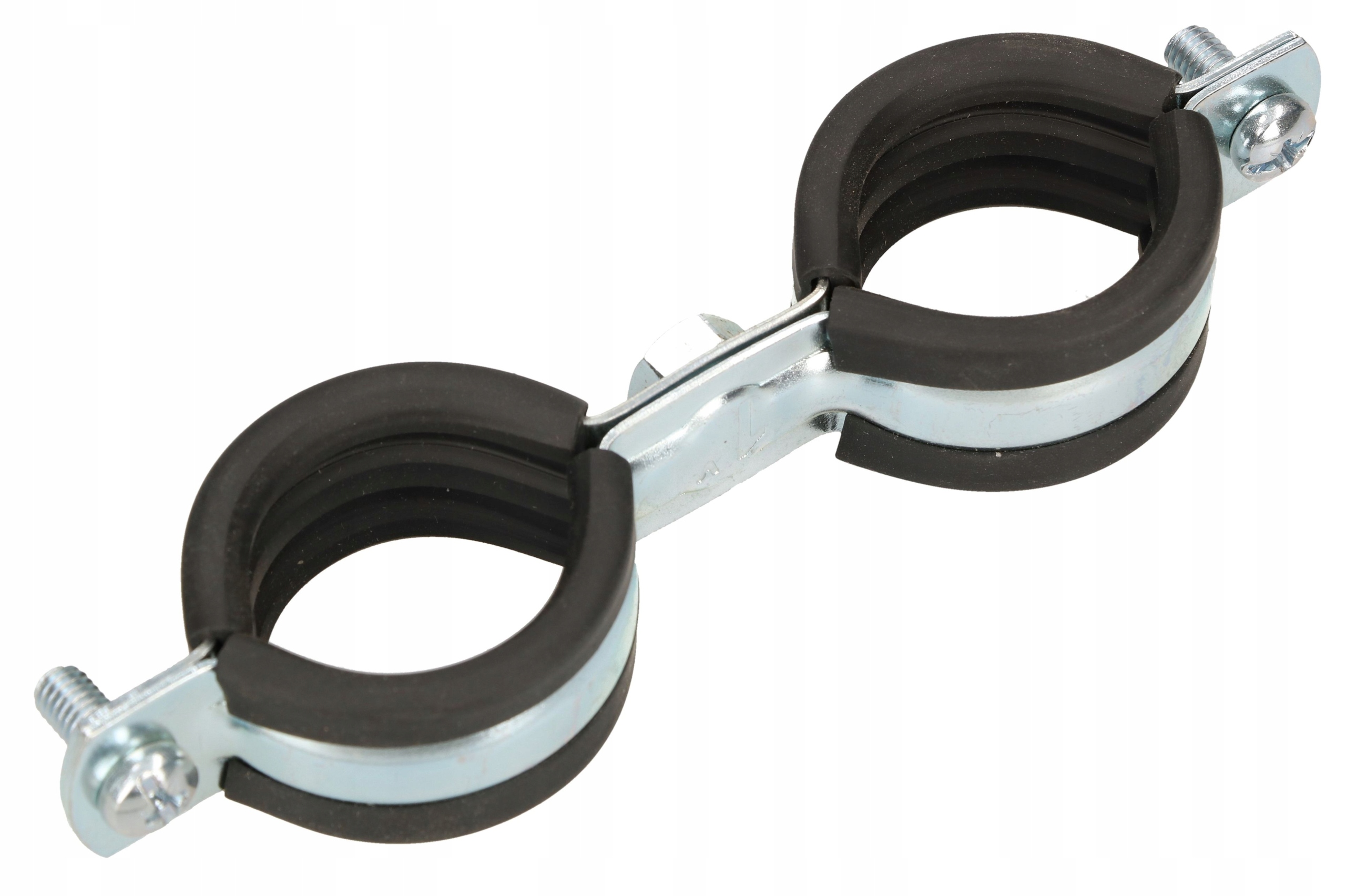 Хомутик двойной с уплотнением позволяет самостоятельно создавать системы монтажа в нашей квартире. Трубодержатель изготовлен из оцинкованной стали, а его прокладка - изготовлен из резины, благодаря чему устойчив к: повышенным температурам, кислотам, солям и влаге, которые могут появиться в ванной или на кухне.Изделие прочное, стабильное, устойчивое к повреждениям, не ржавеет со временем.