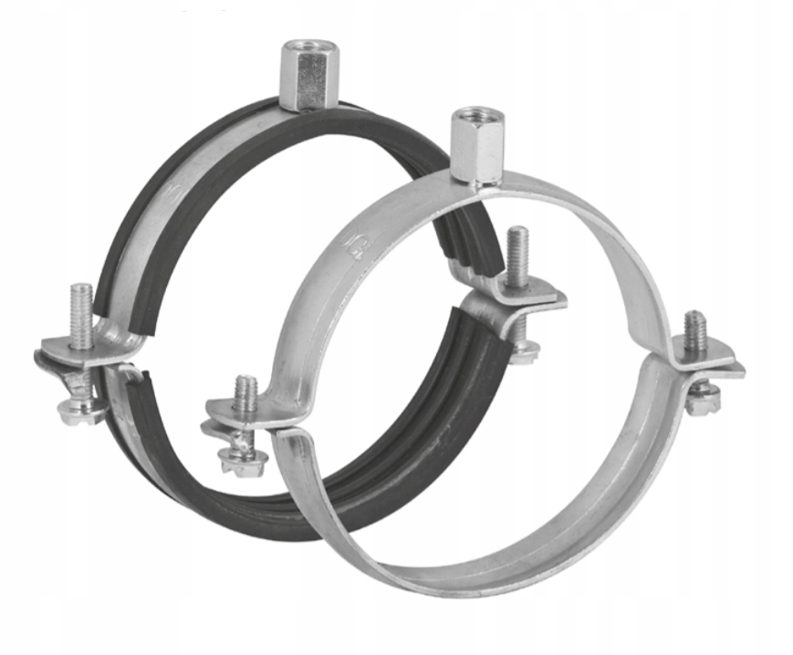 Хомутик CLRL состоит из двух частей, соединенных между собой стальными винтами. Одна сторона самоконтрящаяся, что облегчает установку хомутов на вентиляционные каналы. Зажим крепится с помощью заклепочной гайки М8/М10 к резьбовому стержню или винту с двойной резьбой.