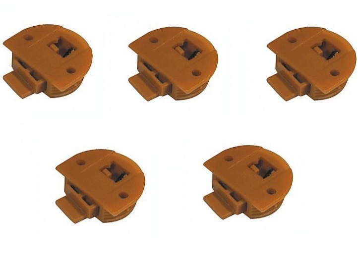 SLIP HITCH - верхний элемент для раздвижных дверей в шкафах-купе. Продукт солидного мастерства, продукт известного польского производителя мебельной фурнитуры. Диаметр - для отверстия 30мм. Цвет ольхи. Аукционная цена за комплект из 5 клипов.