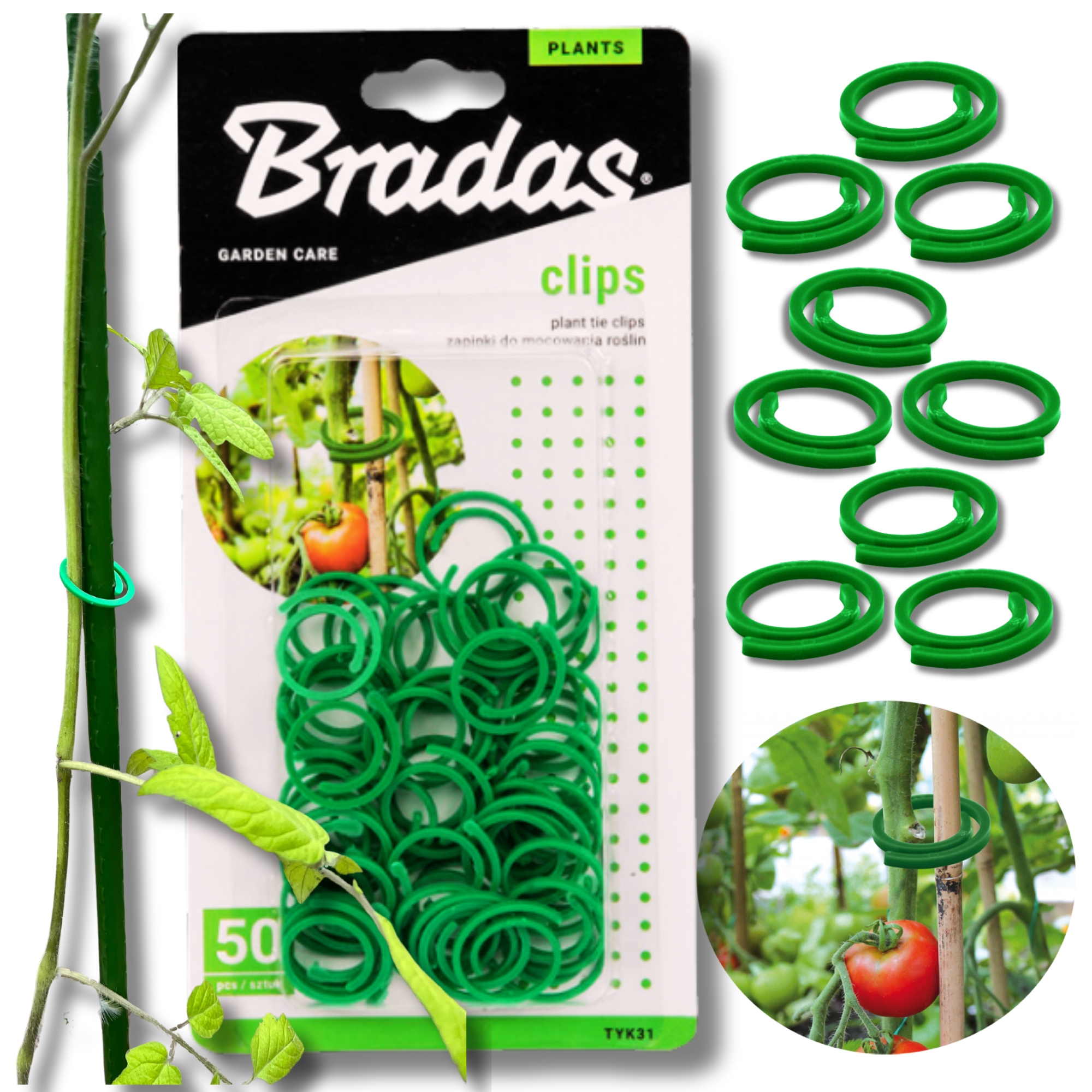ЗАЖИМЫ ДЛЯ КРЕПЛЕНИЯ РАСТЕНИЙ ТОМАТОВ НА СТОЙКИ 50 шт, КРУГЛЫЕ BRADAS TYK31