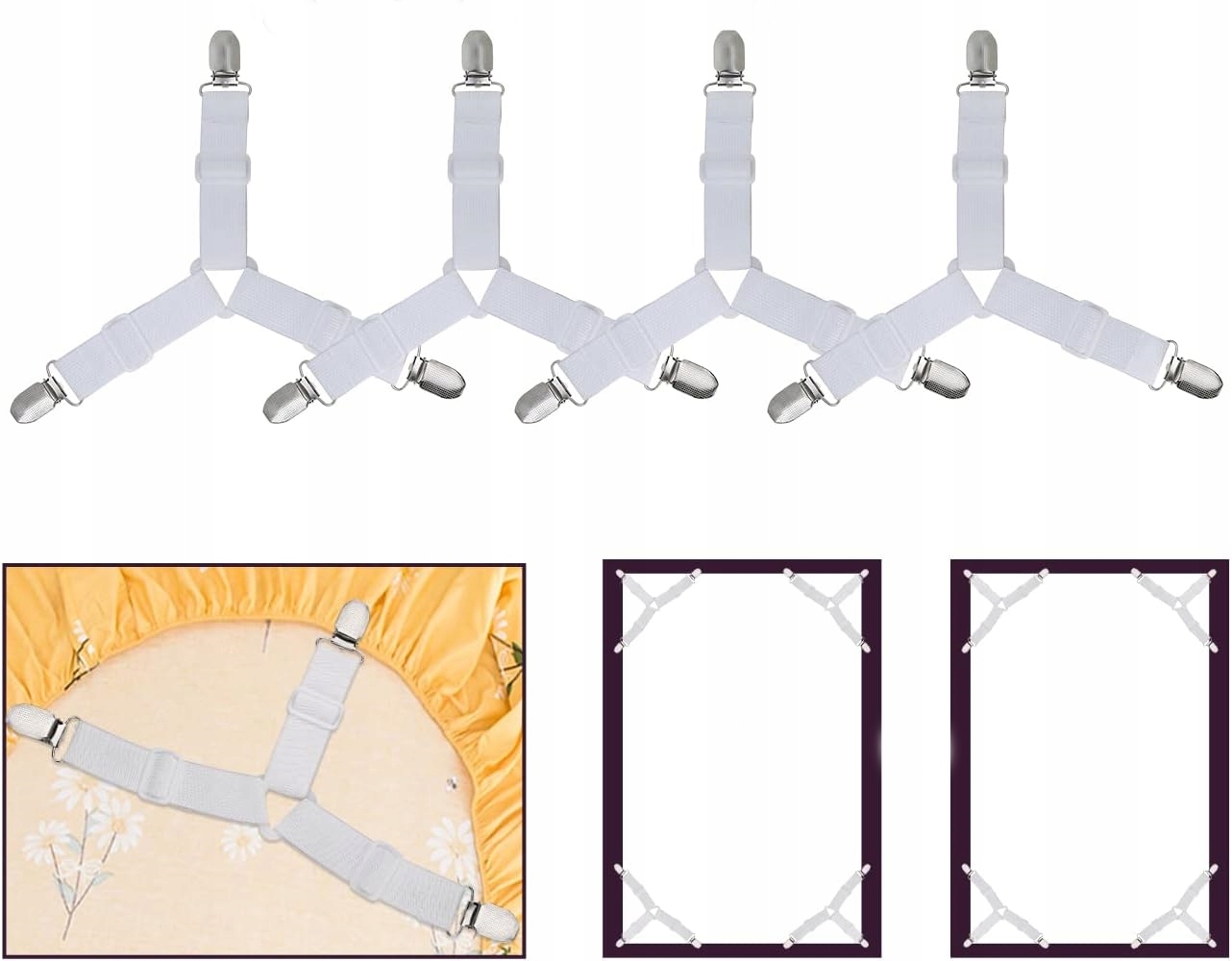 В упаковке 4 крепления для простыней, по одному на каждый угол кровати.