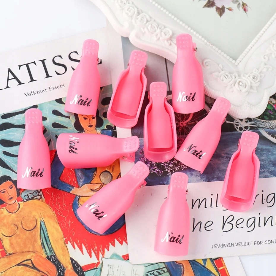 ЗАЖИМКИ для ЗНЯТТЯ гібридного гель-лаку, 10 шт, світло-рожеві