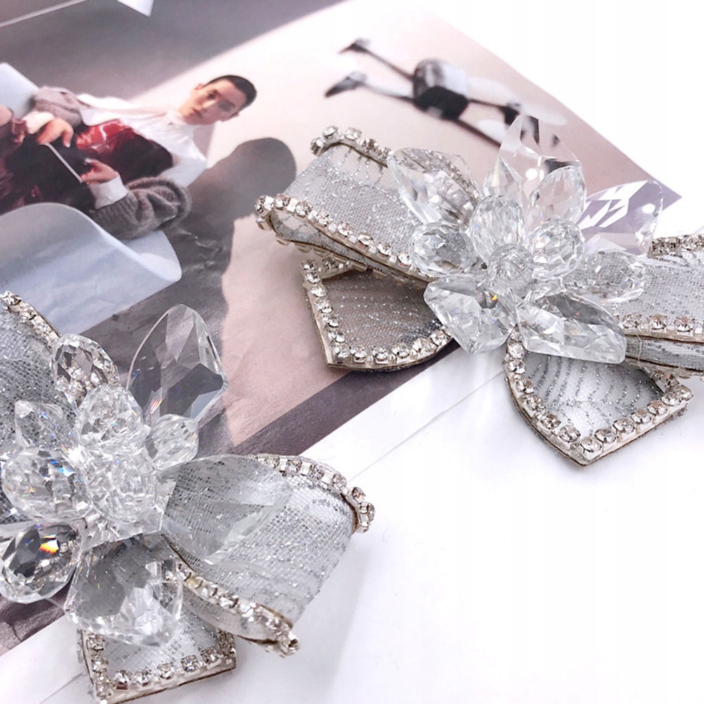 ЗАЖИМЫ ДЛЯ ОБУВИ С КРИСТАЛЛАМИ, БЕЛЫМ БАНТОМ И ЦВЕТКОМ