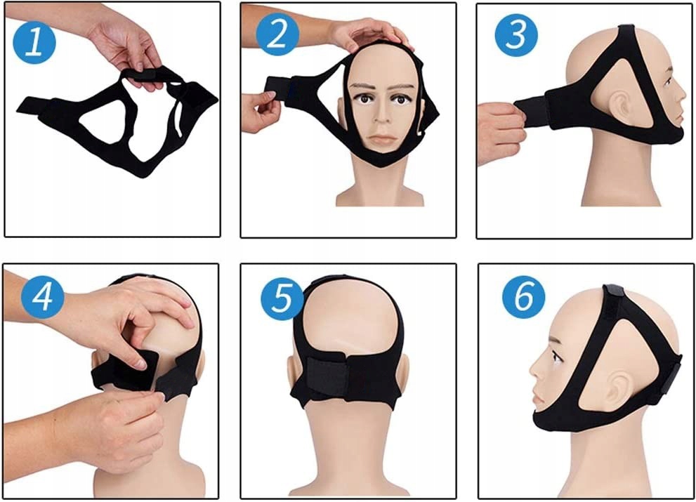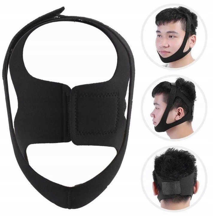 Повязка удерживает подбородок в правильном положении, что поддерживает поток воздуха и носовое дыхание, предотвращает обструкцию дыхательных путей и храп.