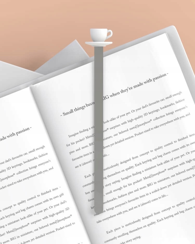 Чашка чая размещена на вкладке. Горячий чай делает чтение более приятным и продолжительным. Чайная закладка — идеальный выбор, если вы ищете подарок любителю чтения.