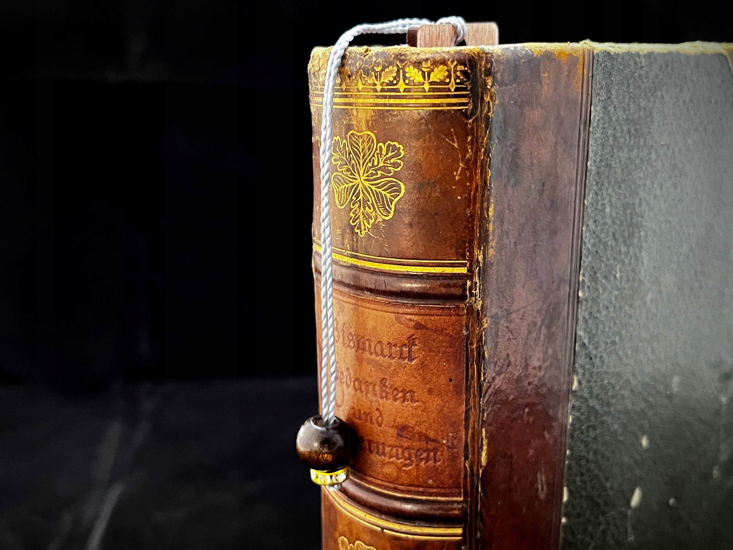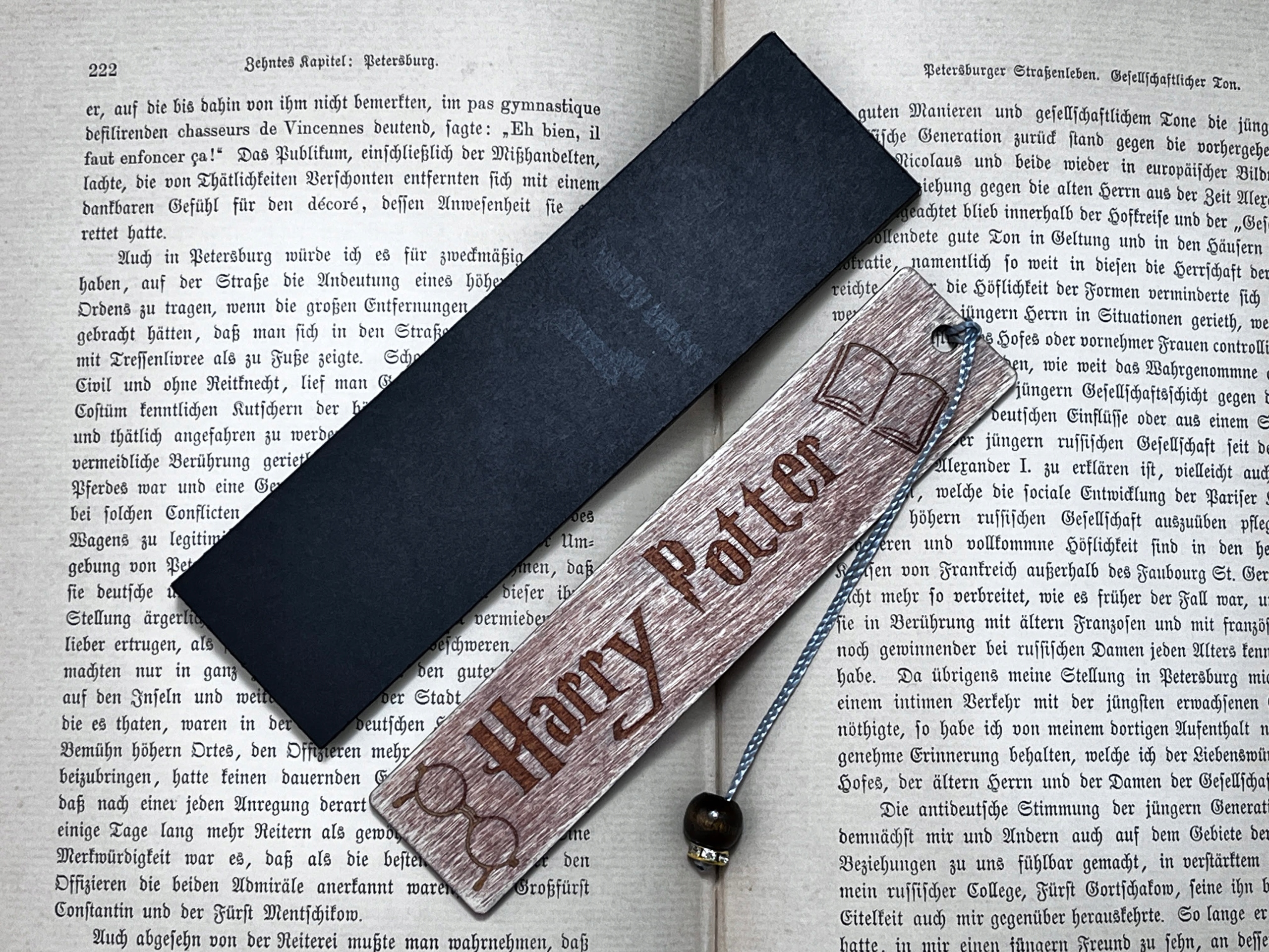 Издание с черными буквами и деревянной подвеской-бусиной.