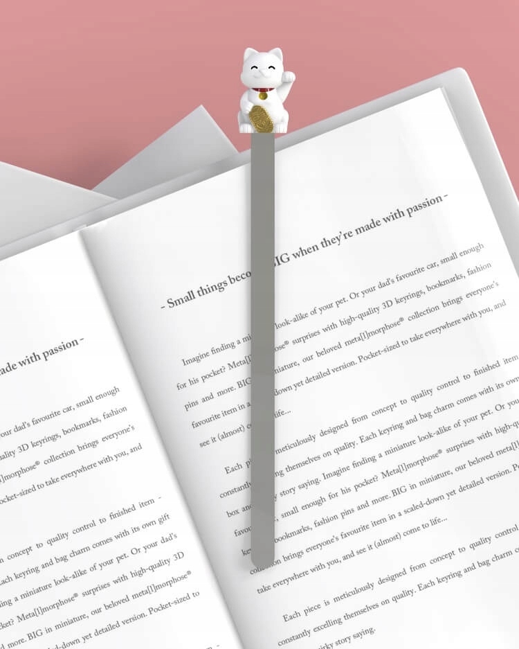 Закладка манеки нэко явно отсылает к японской культуре. На нем изображен узнаваемый котенок, машущий лапкой. Для японцев это символ процветания и богатства и ценное гадательное пророчество. Пусть это будет залогом благоприятной судьбы и для владельца этого оригинального приложения.
