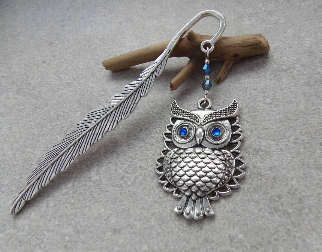 Элегантная, стильная закладка с совой. Закладка имеет форму пера, украшенного красивой голубоглазой совой - символом знаний, мудрости и кристаллами - биконусом 4мм.