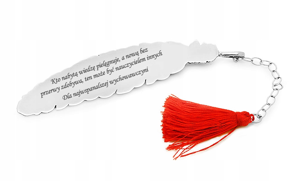 Предлагаемый товар представляет собой закладку с цветной кисточкой, выполненную полностью из серебра 925 пробы высочайшего качества. Закладка была разработана так, чтобы на оборотной стороне было посвящение получателю. Гравировка выполняется лазерным методом, что гарантирует высокую точность и долговечность, делая текст разборчивым.