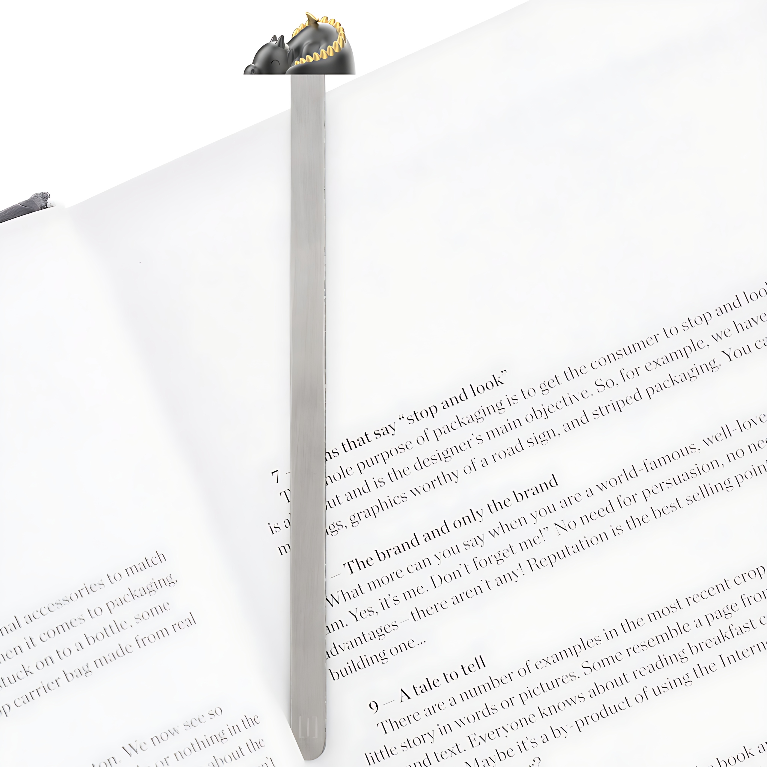 Фантастическая закладка. Металлическая закладка с 3D фигуркой - черный дракон с золотым гребнем и крыльями от бельгийского бренда Metalmorphose.