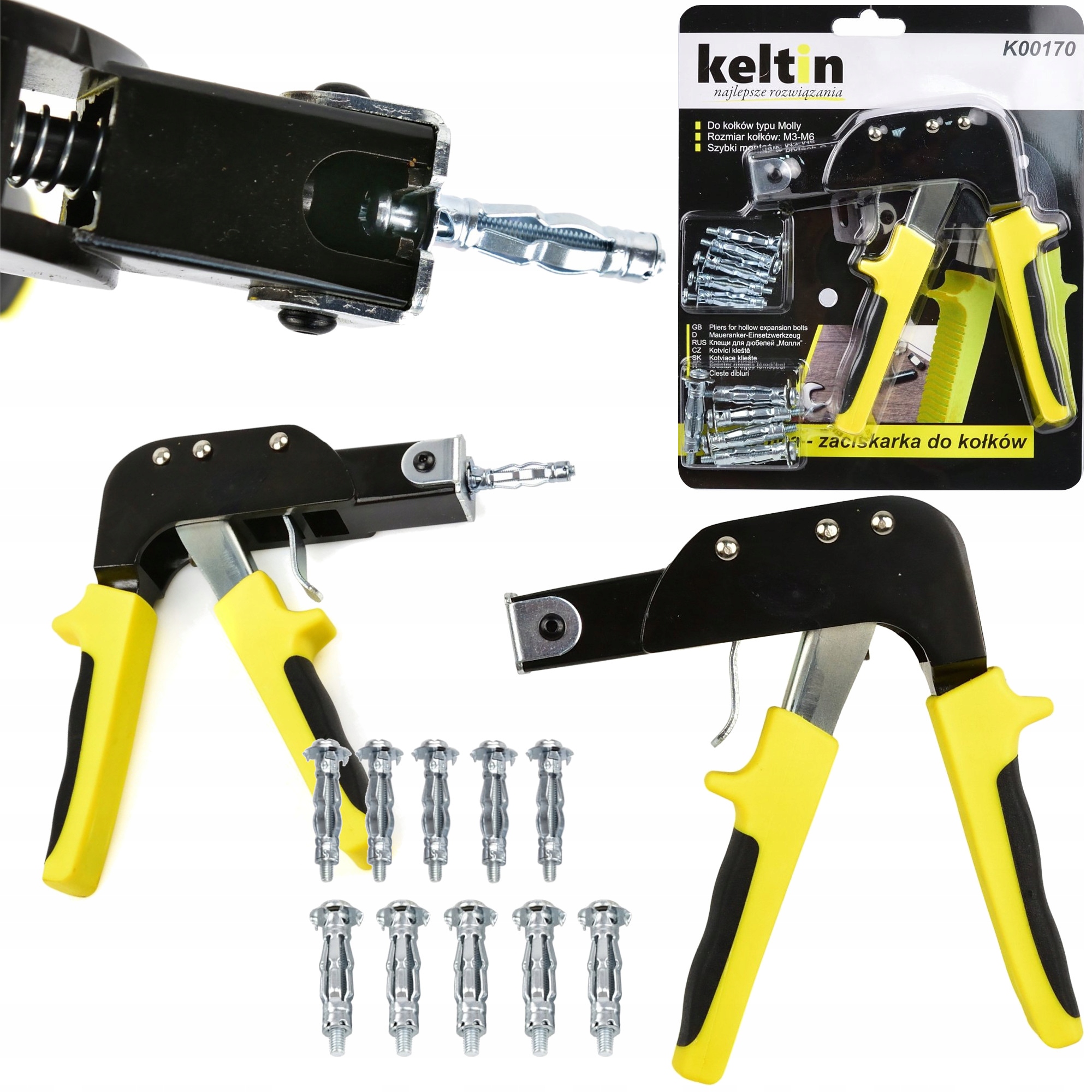Щипцы для дюбелей molly — это профессиональный инструмент, предназначенный для быстрого и повторяемого обжатия дюбелей, установленных в гипсокартоне или материалах с пустым пространством. . С их помощью мы можем прикрепить к гипсокартону легкие элементы, например, вешалки, картины, полки, бра и т. д.
