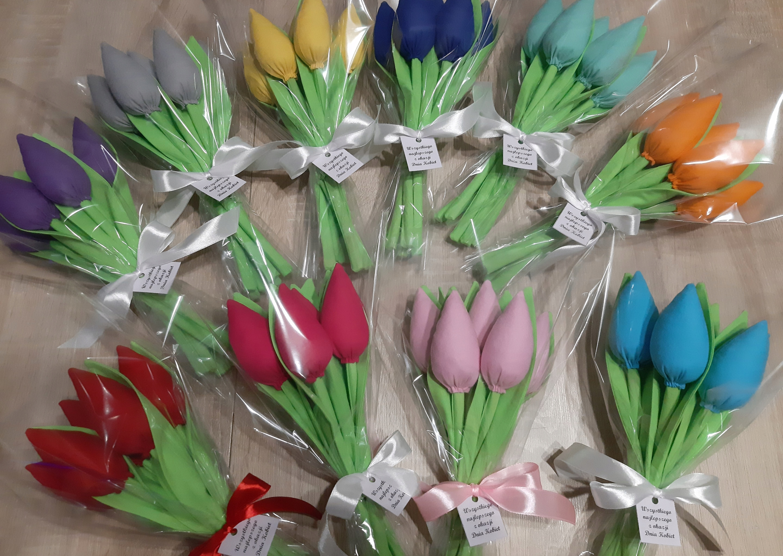 Zakończenie roku szkolnego tulipany z materiału ręcznie szyte + bilecik